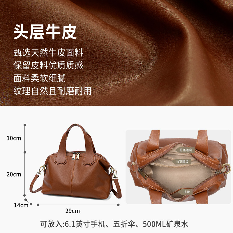 真皮波士顿包包女式2025新款时尚妈妈包斜挎包高级感软皮单肩女包