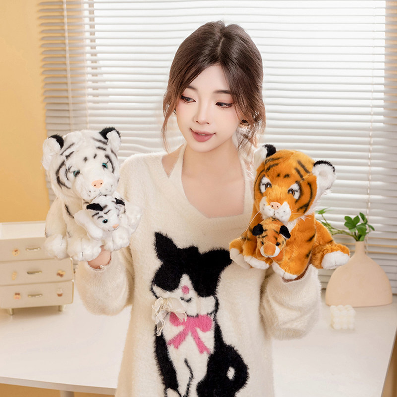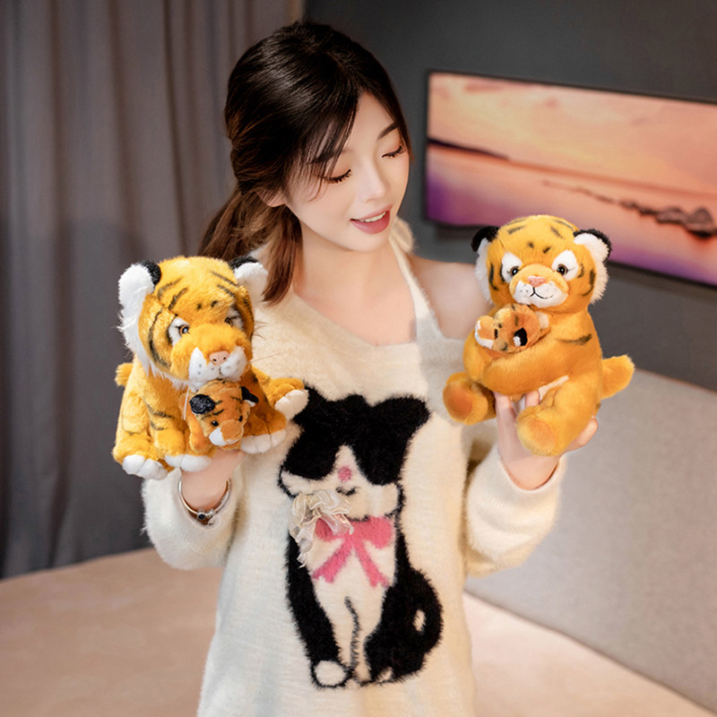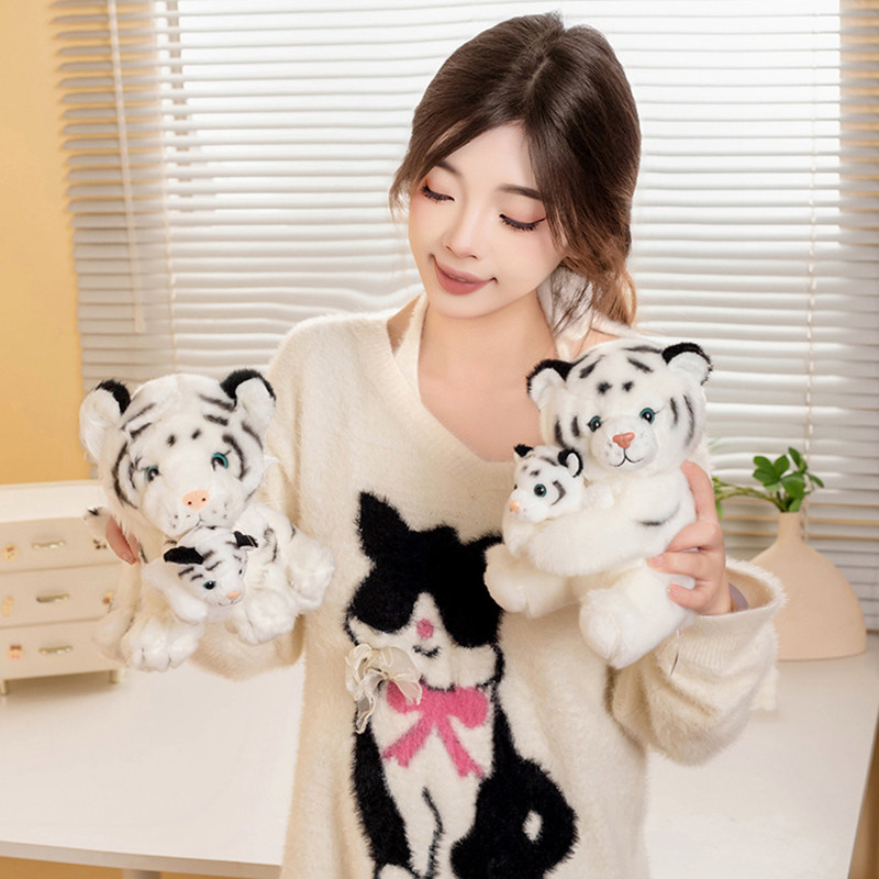 母子小老虎玩偶可爱仿真毛绒玩偶动物园白虎公仔布娃娃儿童礼物女