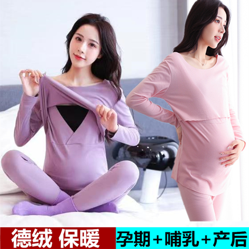 孕妇秋衣秋裤套装加绒保暖衣秋冬季产后哺乳喂奶月子服睡衣孕妇装
