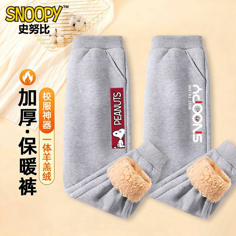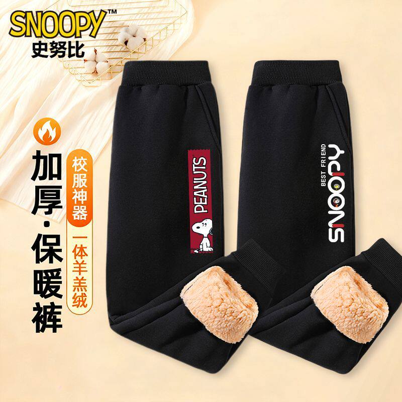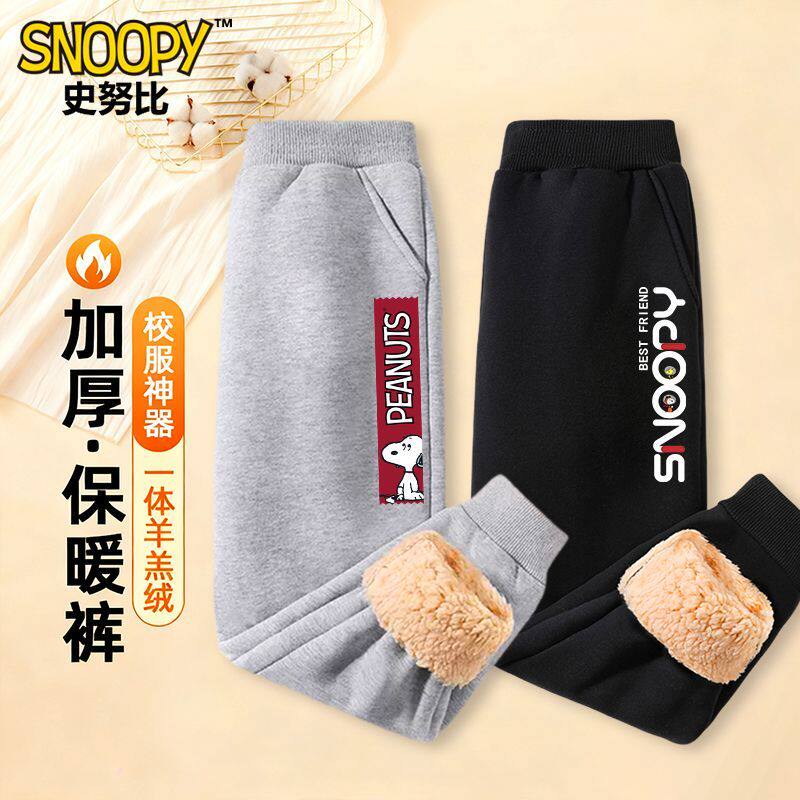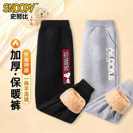 史努比男童冬季加绒裤子加厚羊羔绒卫裤一条过冬裤儿童棉裤秋冬款