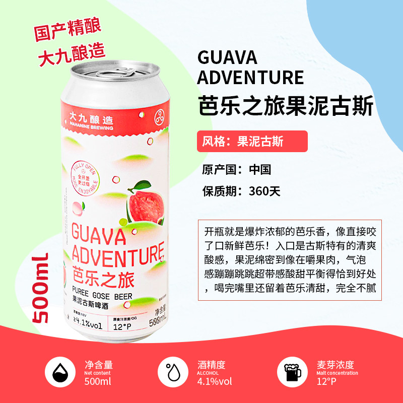 大九酿造芭乐之旅果泥古斯马冬莓流体果泥啤酒罐装500ml组合装