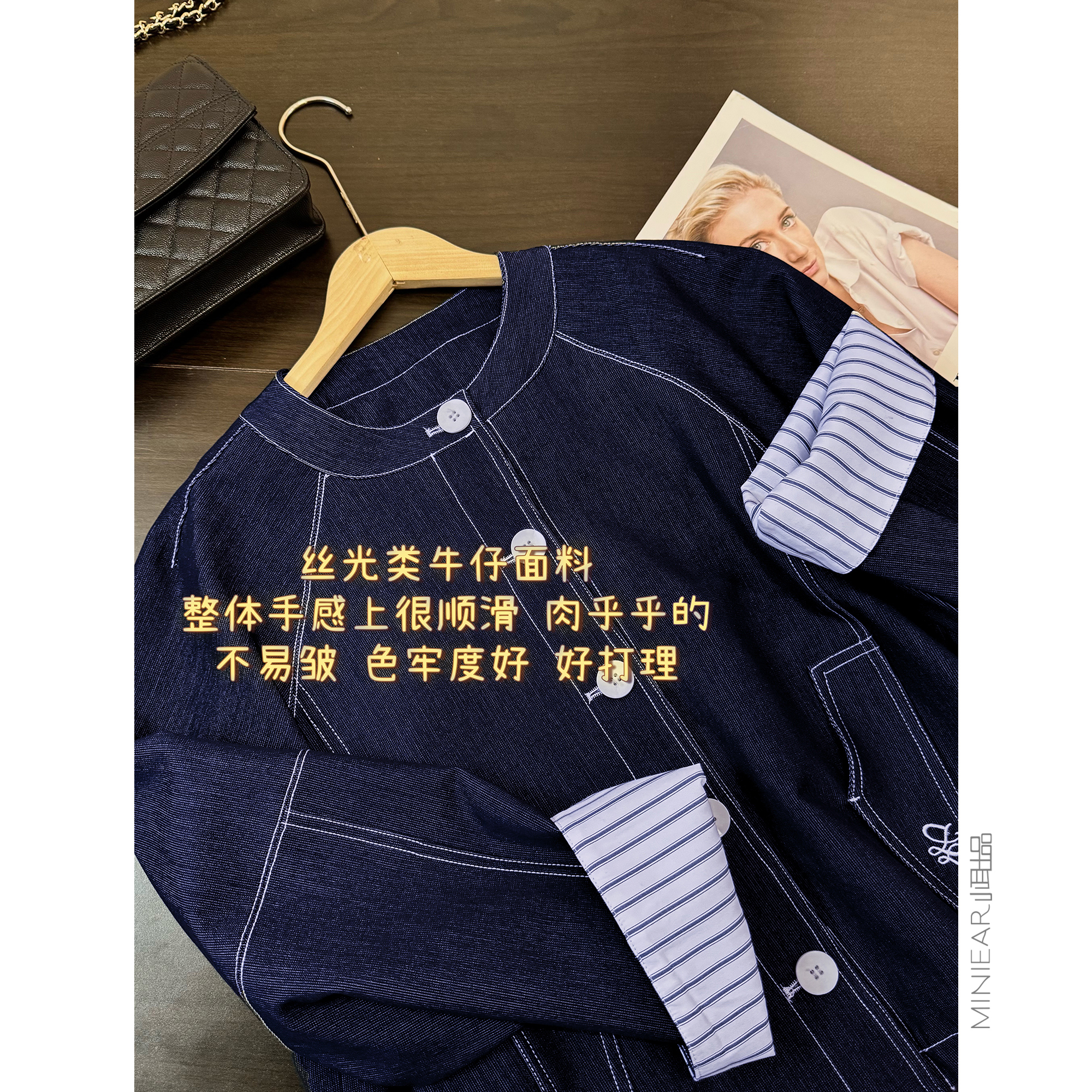 小耳出品柔软亲肤设计感宽松休闲通勤百搭条纹翻袖圆领单排扣外套