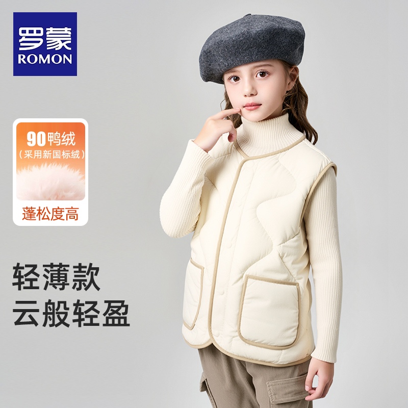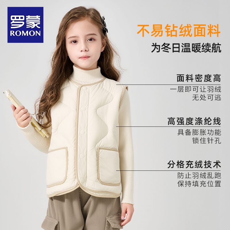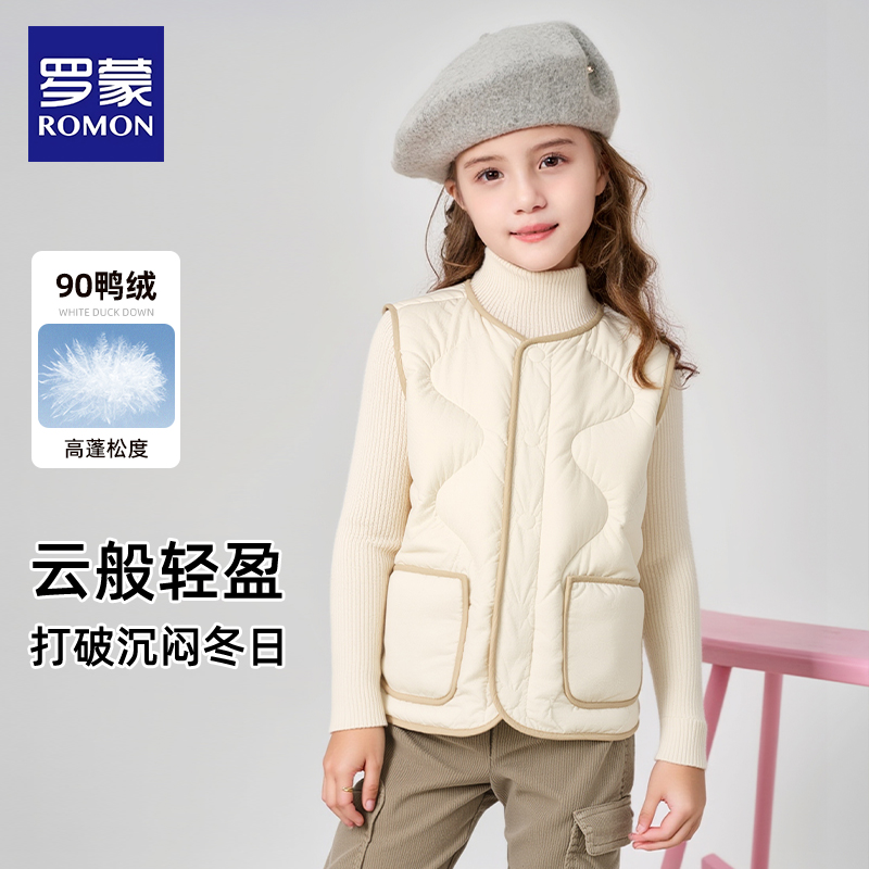 罗蒙女童羽绒马甲冬装保暖2025新款儿童洋气轻薄校服神器内胆背心