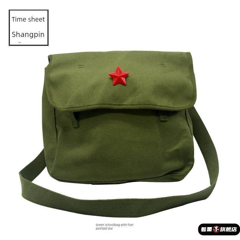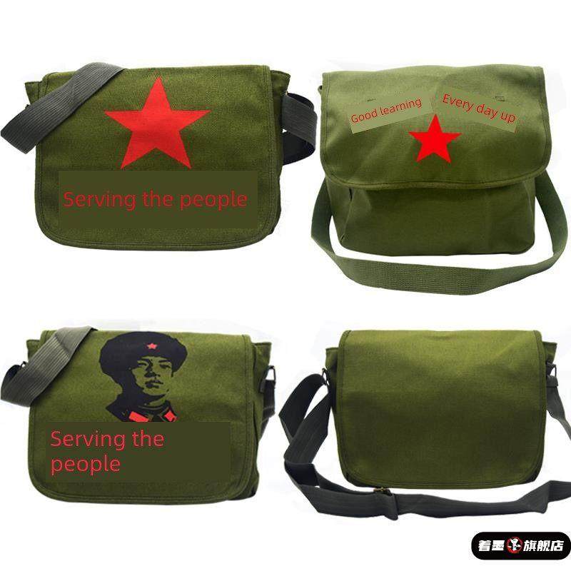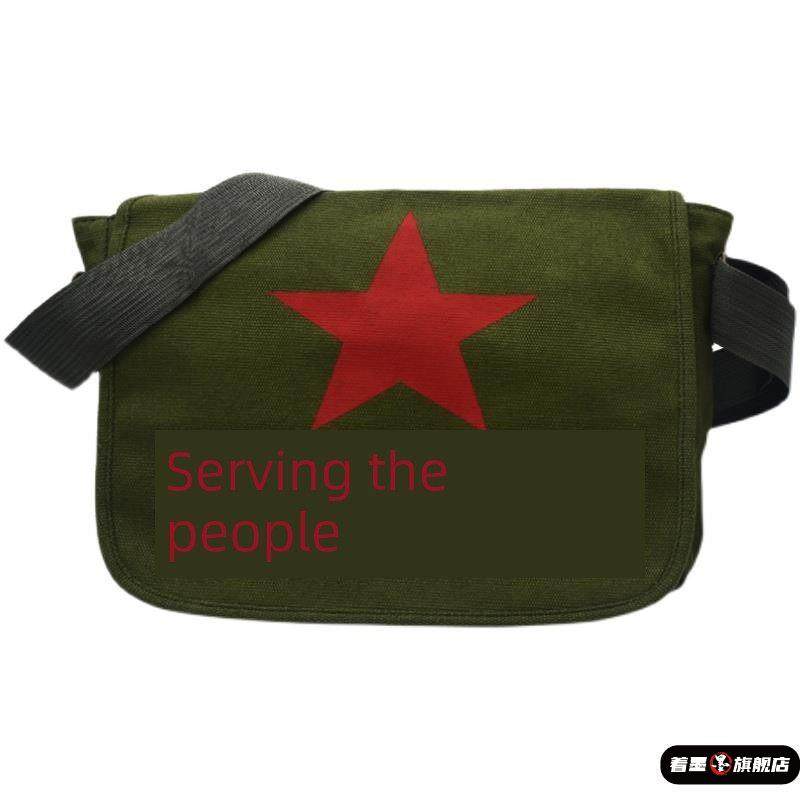 为人民服务斜挎帆布包学生邮差包军绿学院风怀旧复古书包雷锋背包