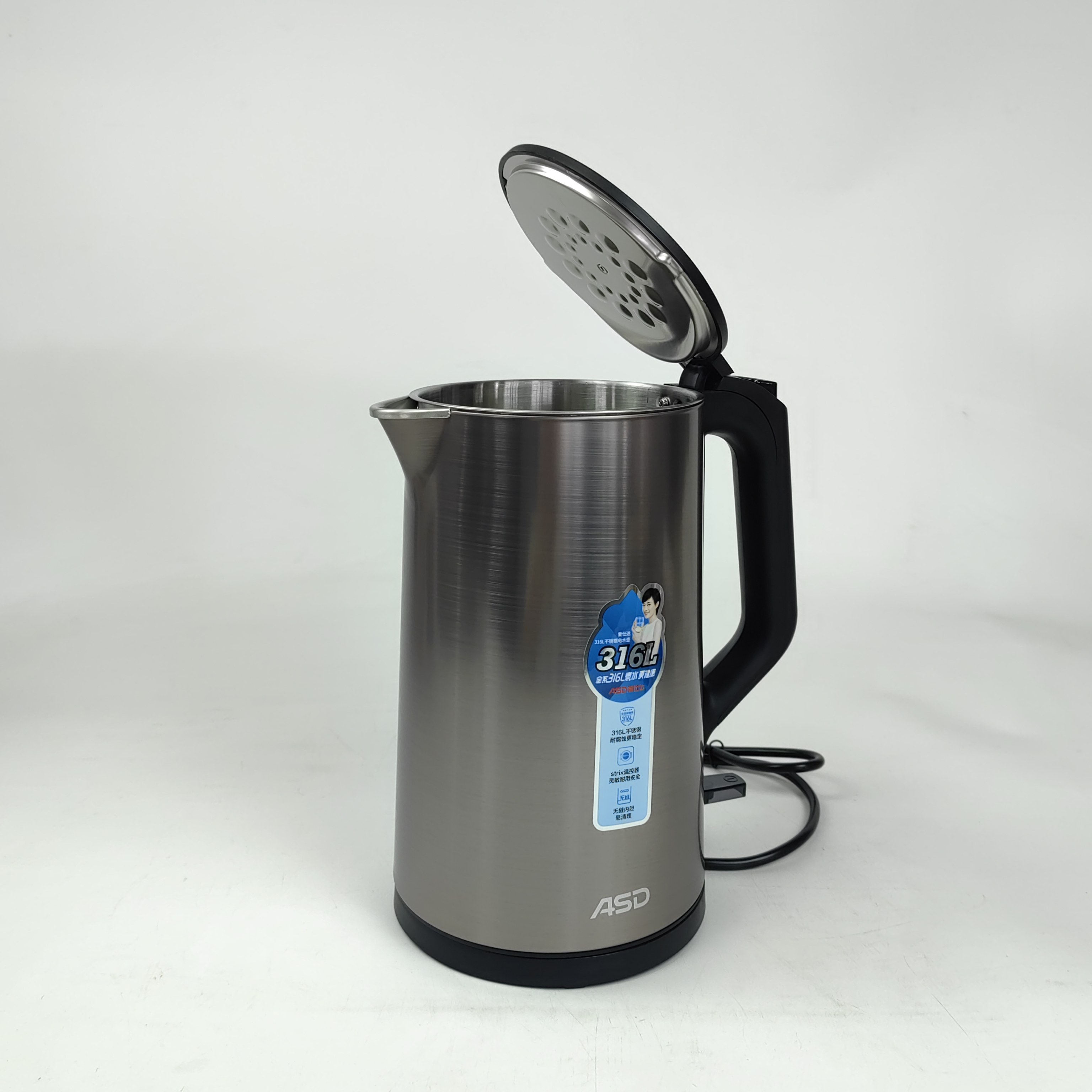 爱仕达电水壶316L不锈钢1.7L水壶