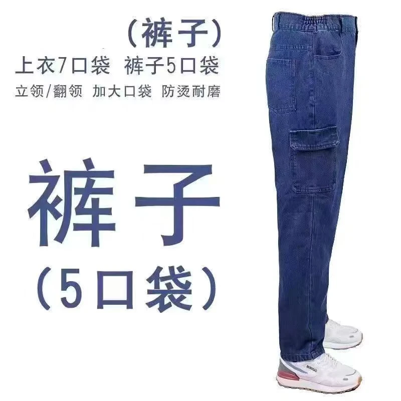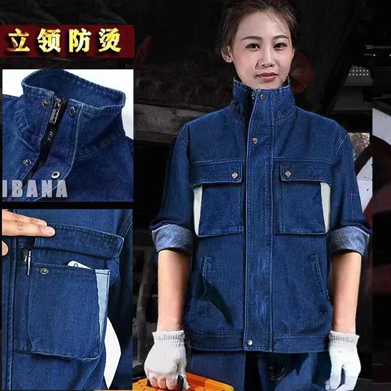 牛仔工作服男装套装男士防烫电焊工工地干活汽修电工纯棉厂服车间