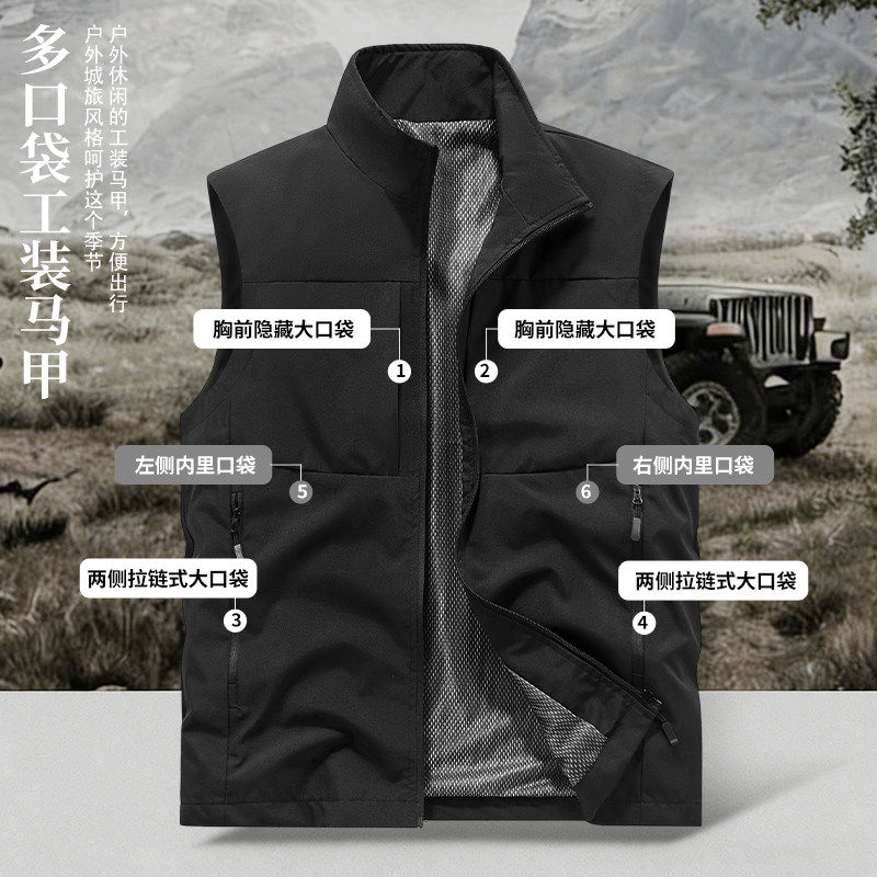 户外马甲防风外穿多口袋冲锋衣工装防盗背心工装风无袖坎肩马夹女