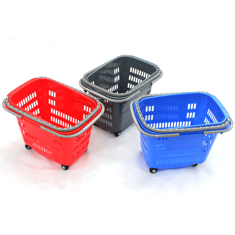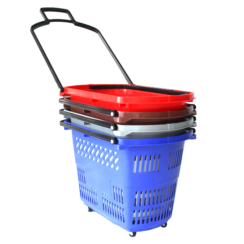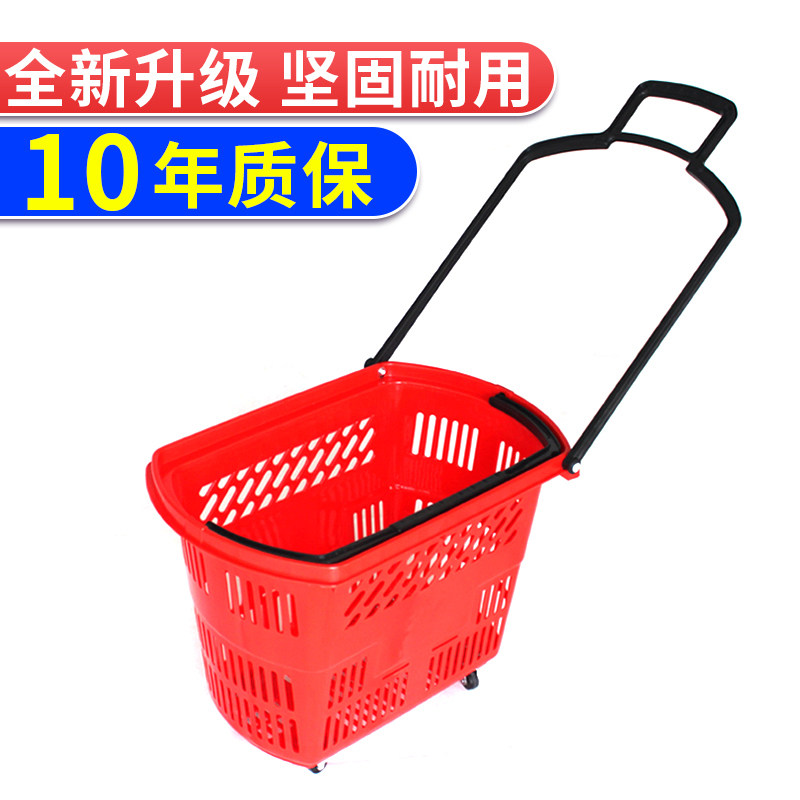 凯立金超市购物篮拉杆带轮手提篮子拉篮塑料买菜购物筐大号购物车