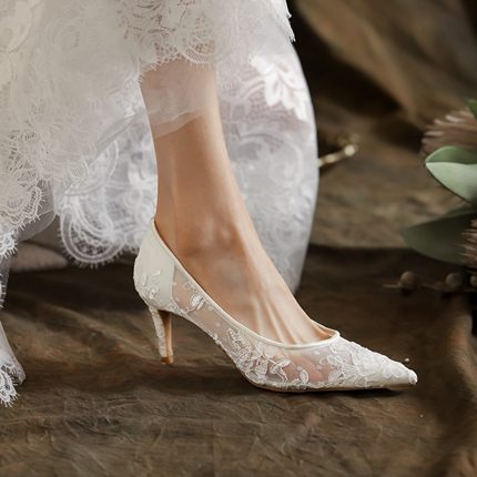 高级感婚鞋主婚纱新娘鞋2025春白色蕾丝高跟鞋气质伴娘礼服鞋日常