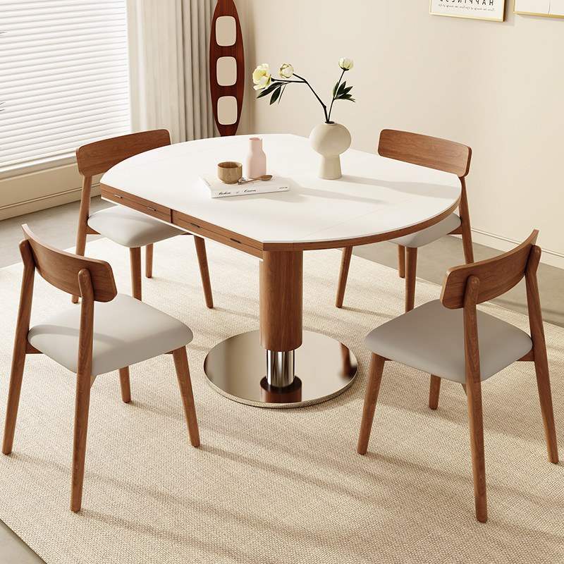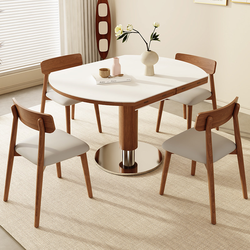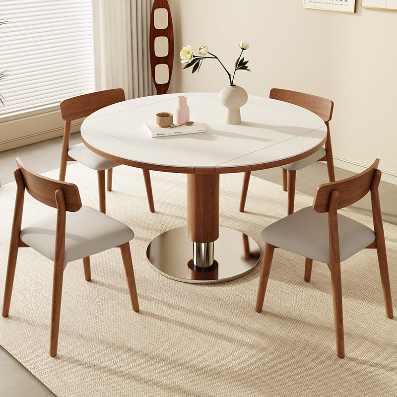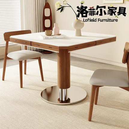 复古北欧简约风家用岩板实木折叠餐桌椅组合小户型多功能吃饭桌子