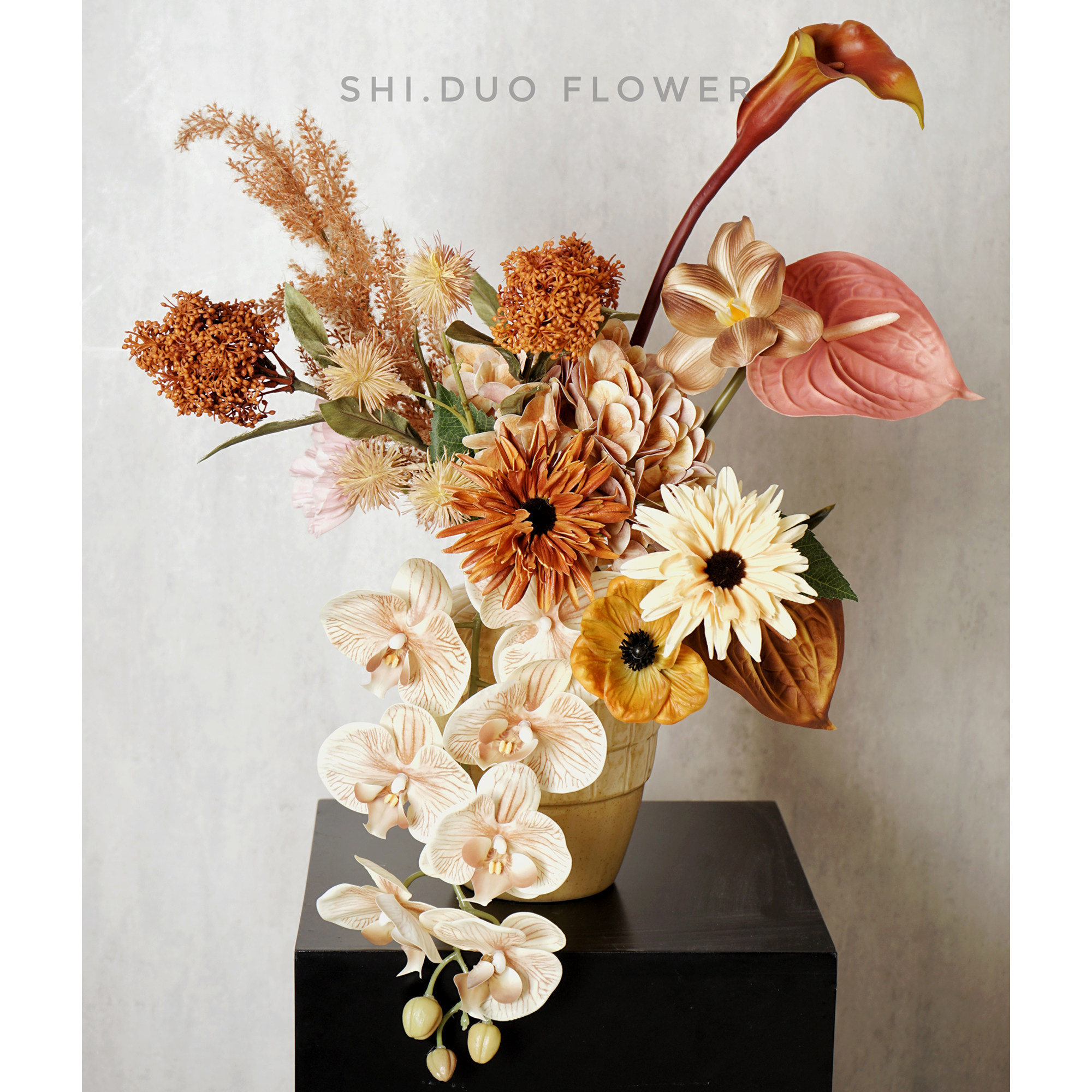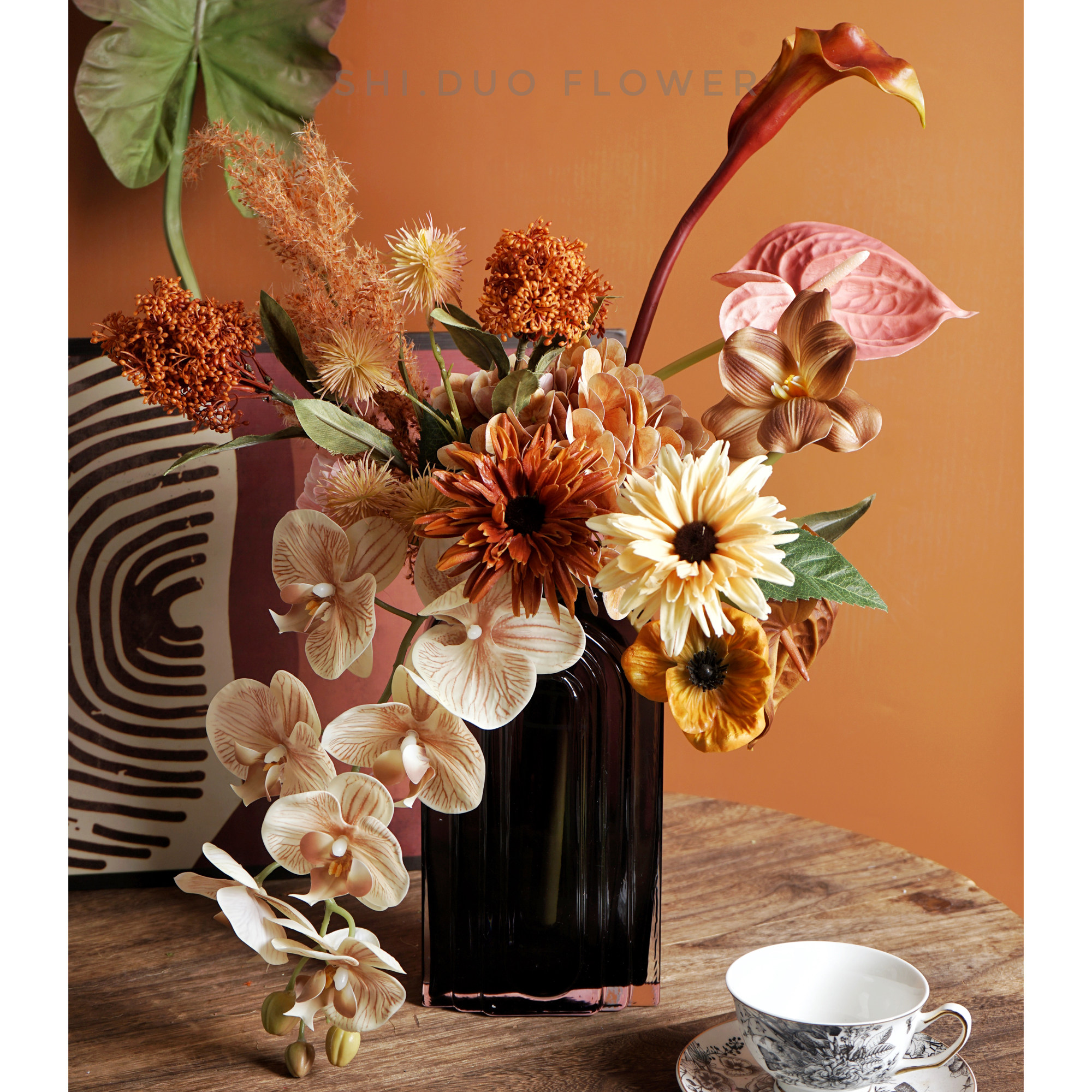 仿真花高级感侘寂风室内餐厅花卉摆件家居软装茶几摆设