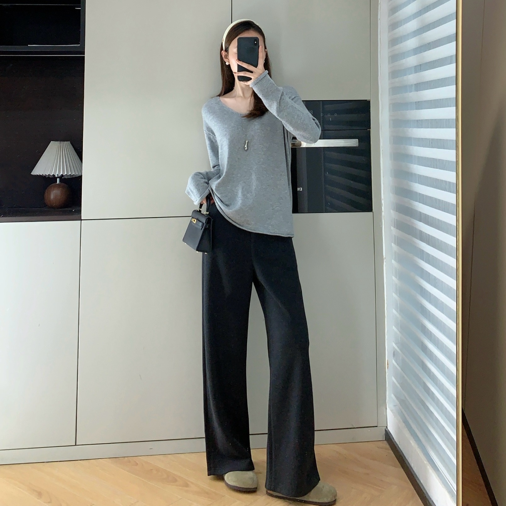 真丝羊毛裤子休闲西裤小个子垂感直筒裤加厚毛呢阔腿西装裤女秋冬