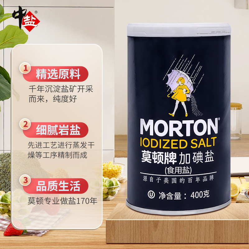 【4罐】莫顿加碘精制盐细盐家用食用盐罐装食盐宿舍盐瓶装400g