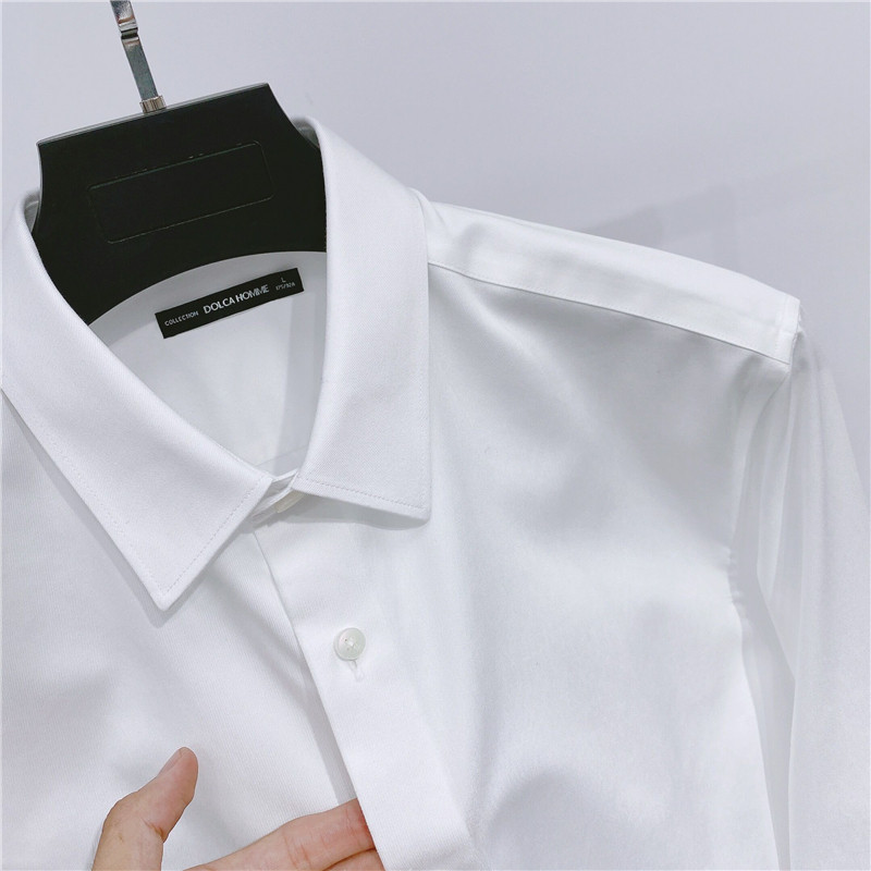 DH原创25年秋季纯色长袖免烫衬衫男士休闲全棉方领抗皱青年白衬衣