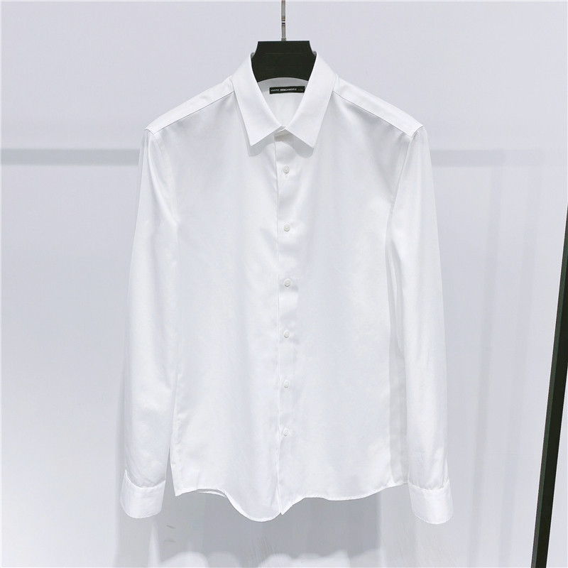 原创秋季长袖纯棉免烫纯白衬衫