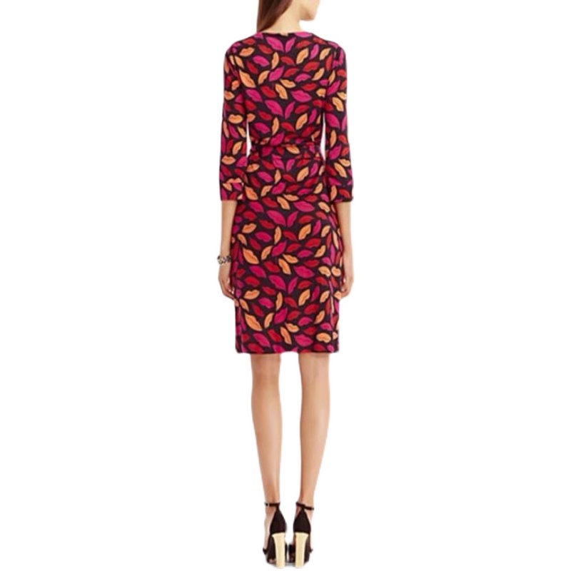 D家新款嘴唇印花系带长裙裹身裙