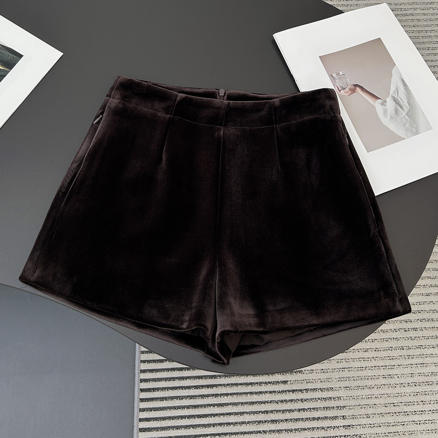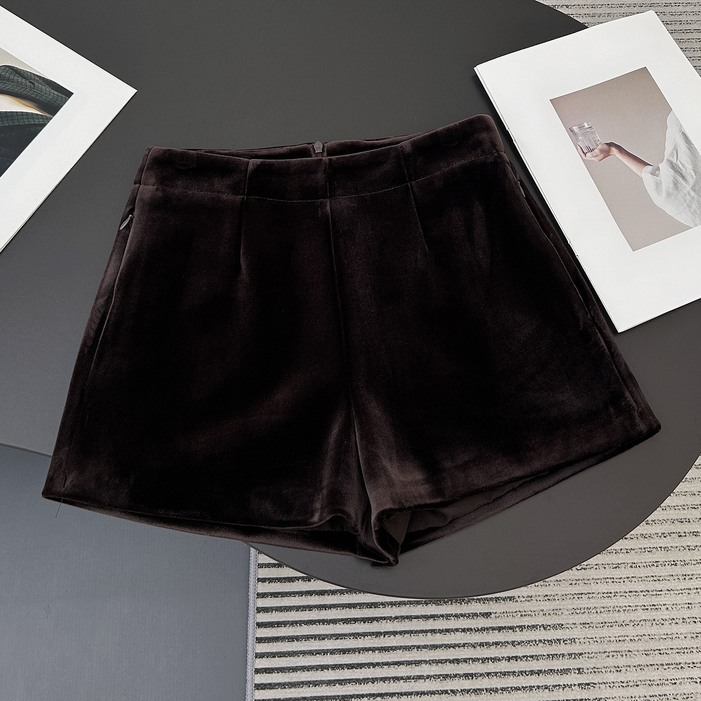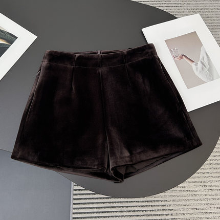 软糯丝绒短裤女秋冬季直筒休闲裤