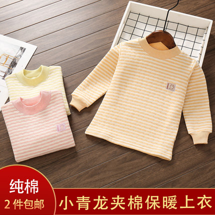 小青龙秋冬儿童彩棉加厚单件保暖上衣男童女童宝宝夹棉内衣棉毛衫
