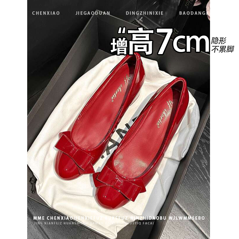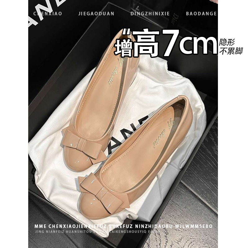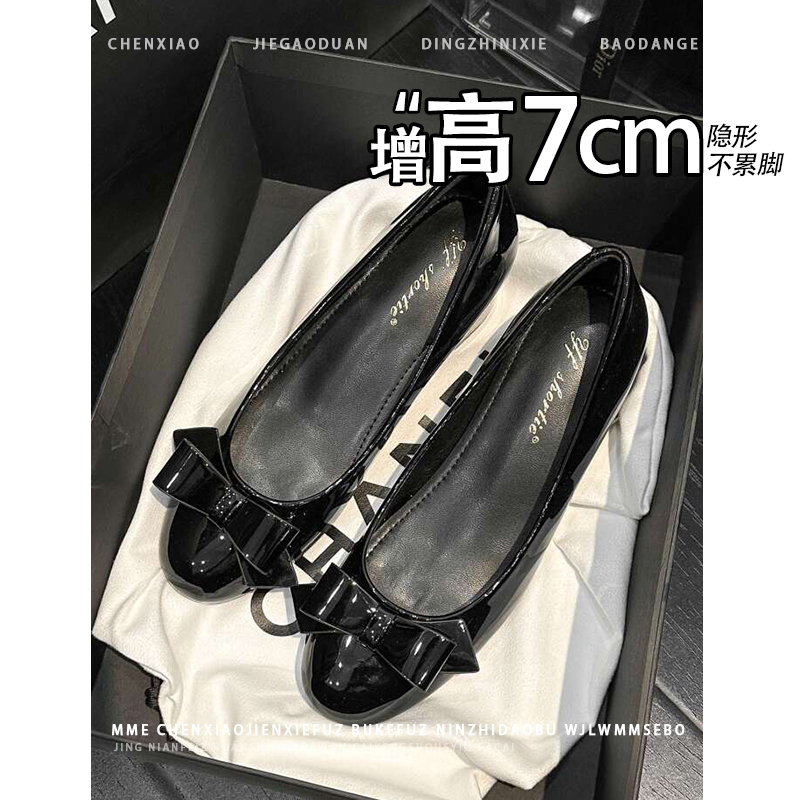 不累脚!隐形内增高7CM玛丽珍鞋2025秋新款浅口一脚蹬粗跟单鞋女