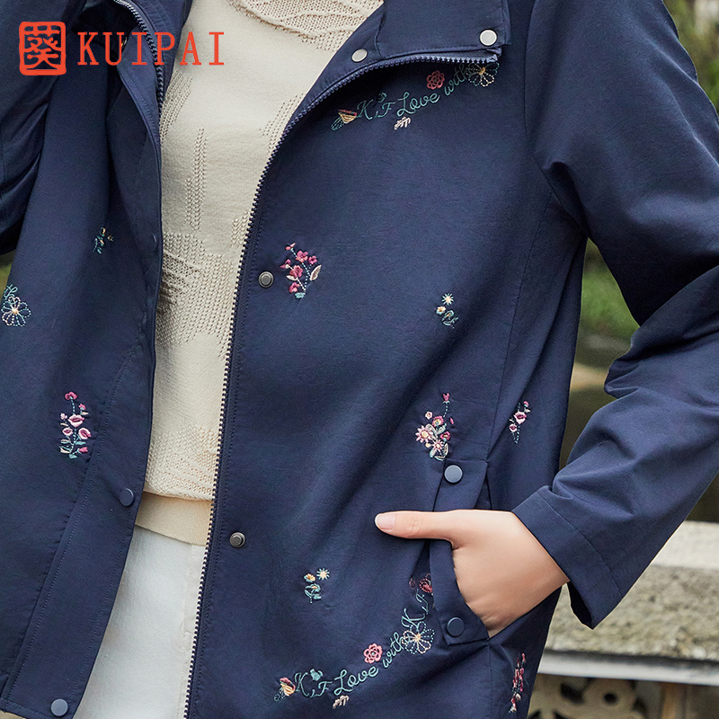 葵牌妈妈洋气精致绣花女宽松洋气中长款中老年人连帽秋风衣外套