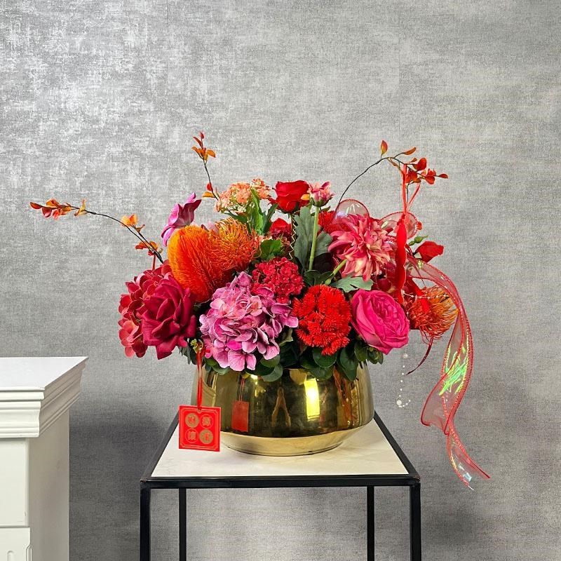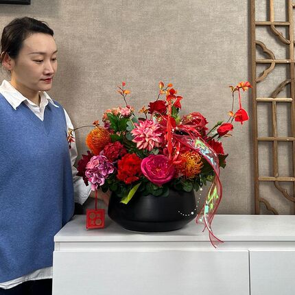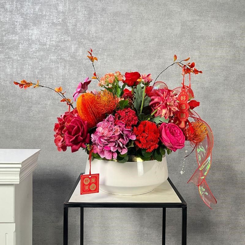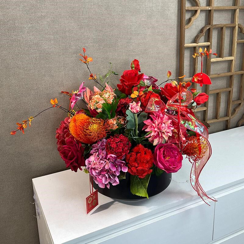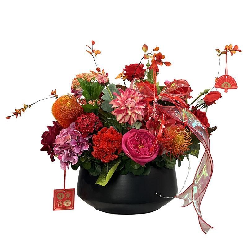 红色年宵花手感玫瑰插花中式仿真花摆件假花套装乔迁开业喜庆花艺