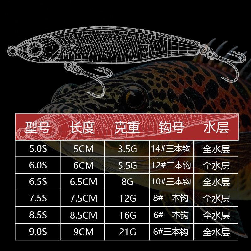 金舟小银鱼二代颤沉水铅笔死飞远投米诺假饵淡水海钓翘嘴鲈鱼鱤鱼