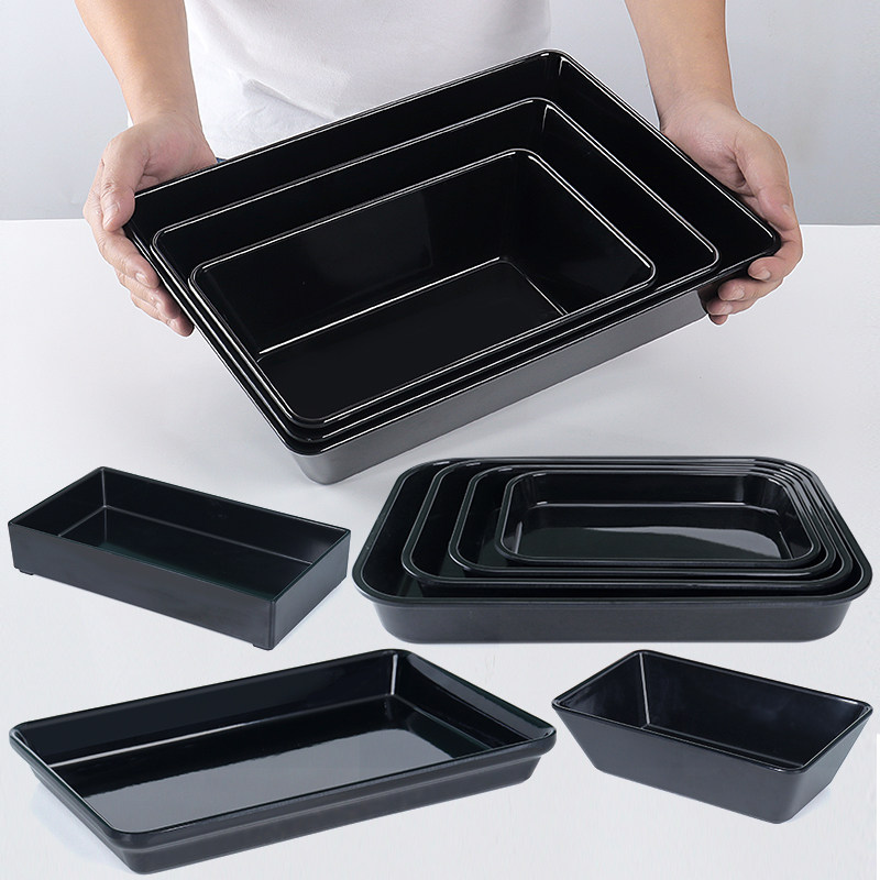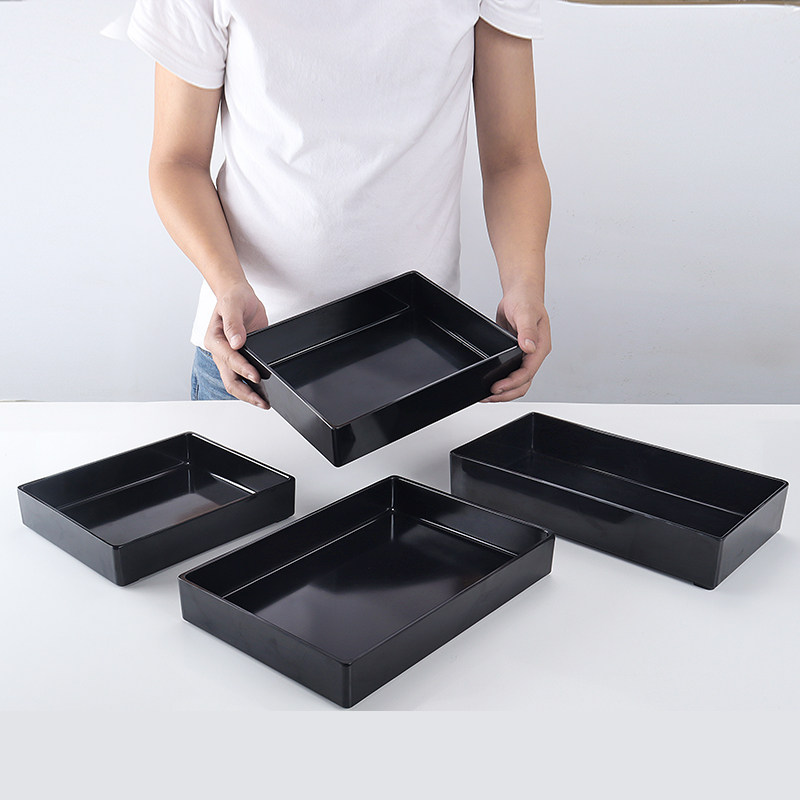密胺冰箱熟食鸭脖鸭货仿瓷大托盘长方形黑色凉拌菜展示盘卤菜盘子