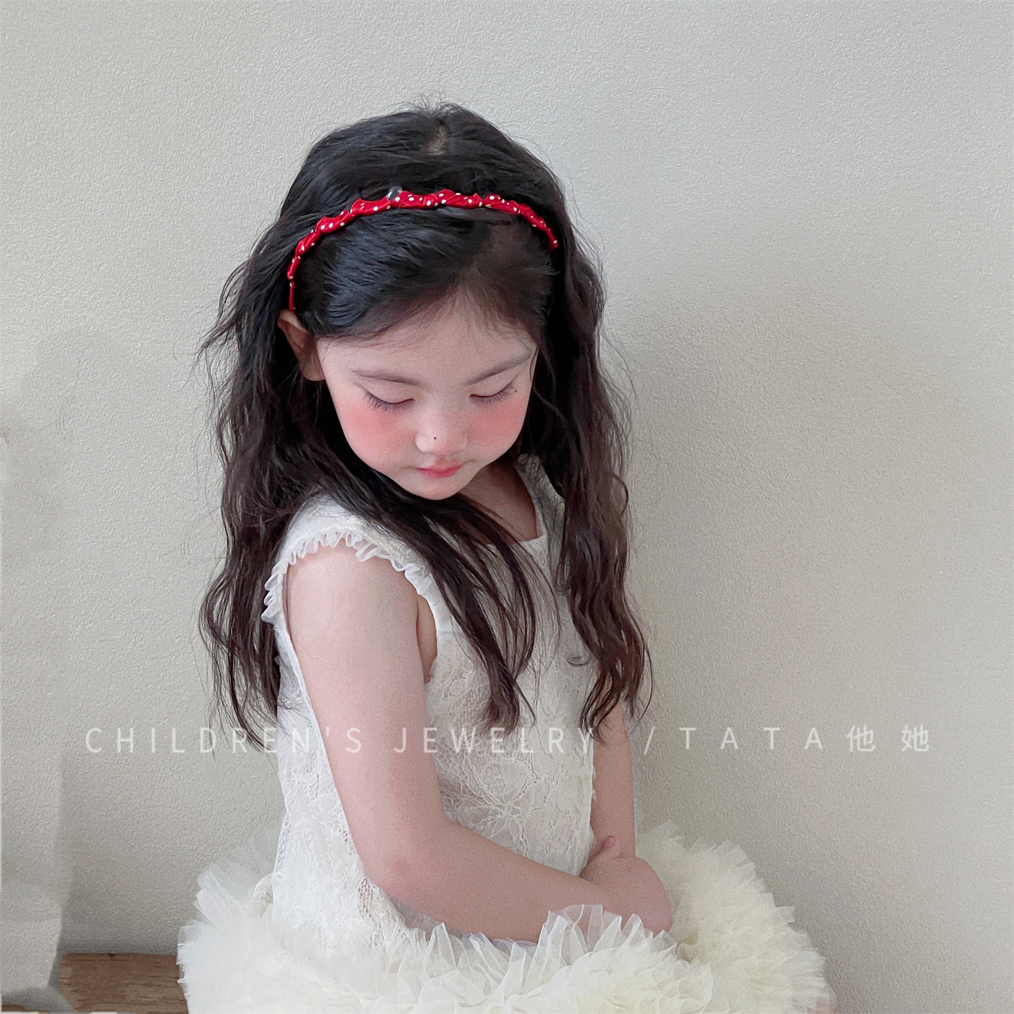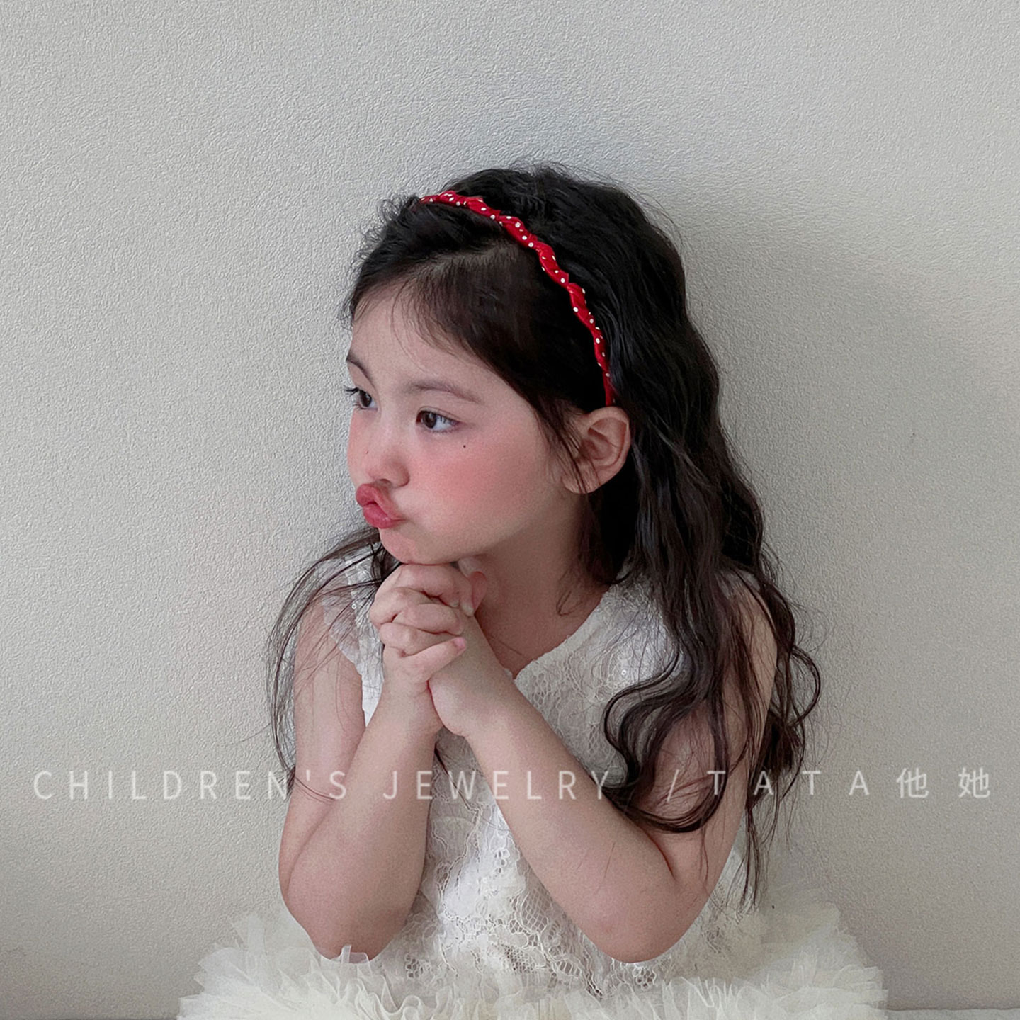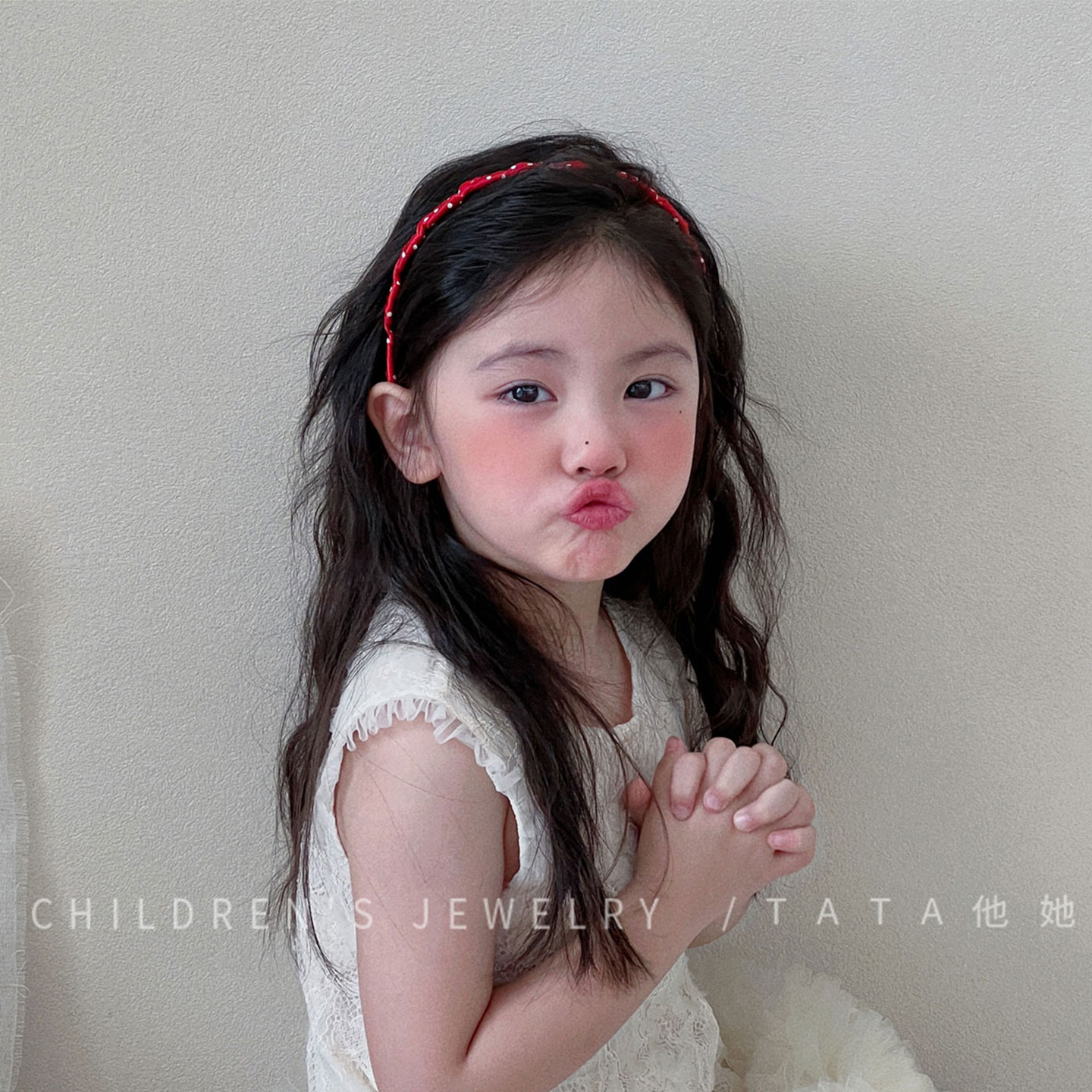 早秋韩系红色高颅顶发箍女童碎发神器带齿防滑压发发卡小女孩头箍