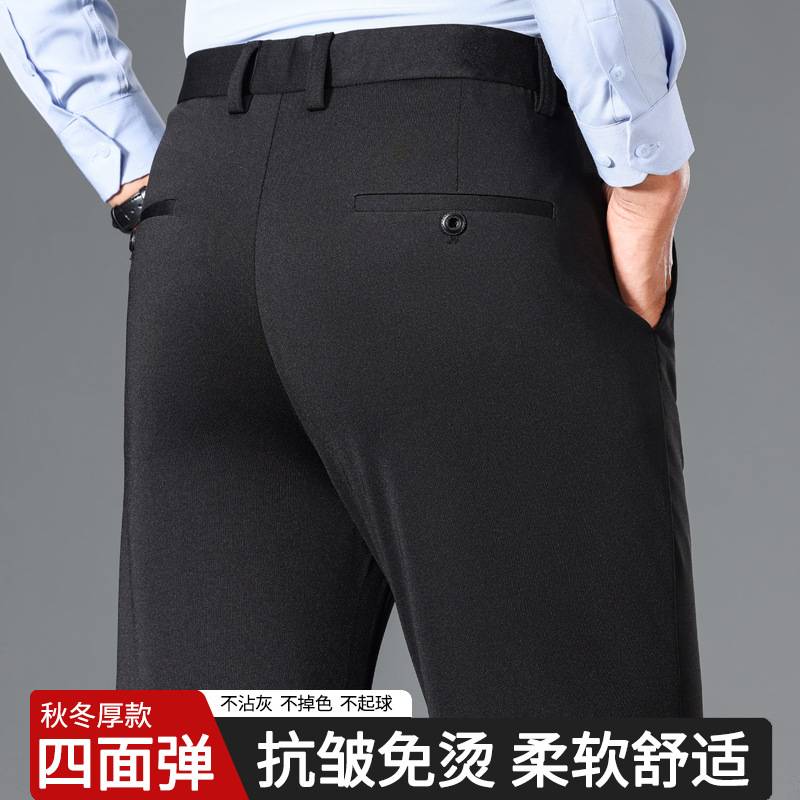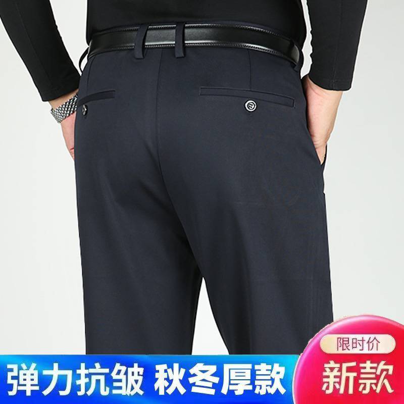品牌官方中年男士休闲长裤子春秋厚款弹力免烫男裤父亲宽松直筒爸