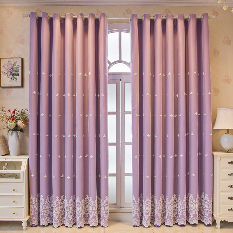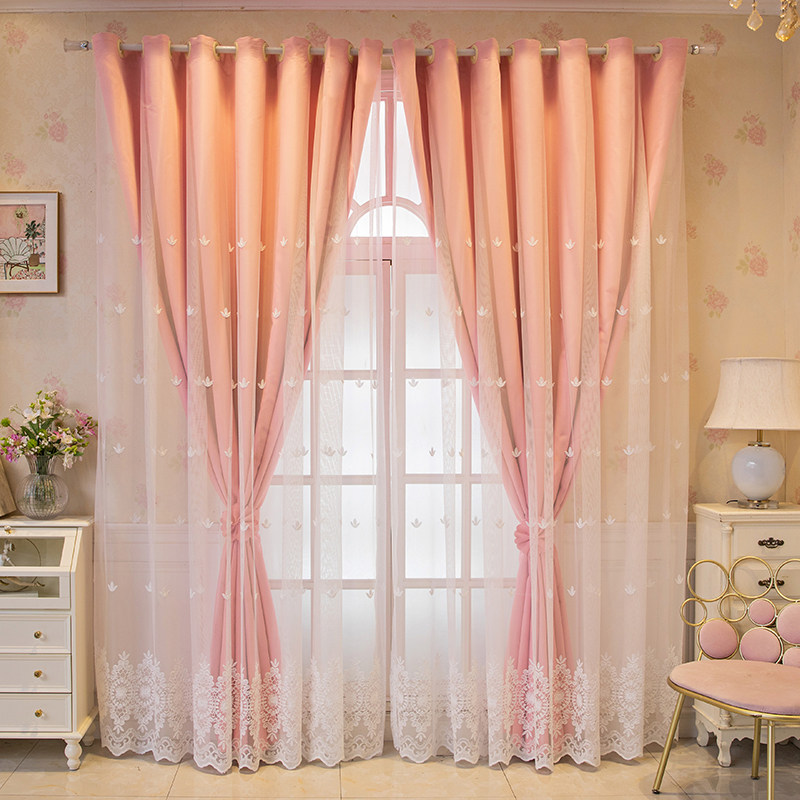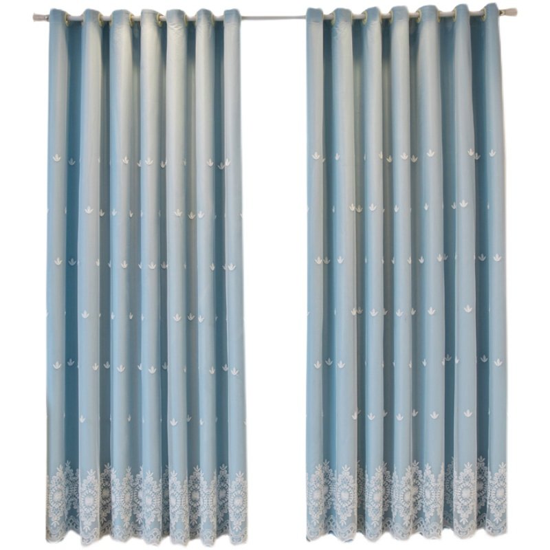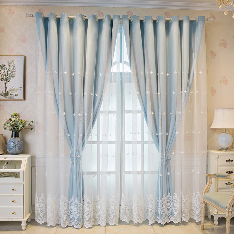 窗帘遮光布纱一体双层飘窗客厅卧室纯色田园简约现代绣花纱帘新款
