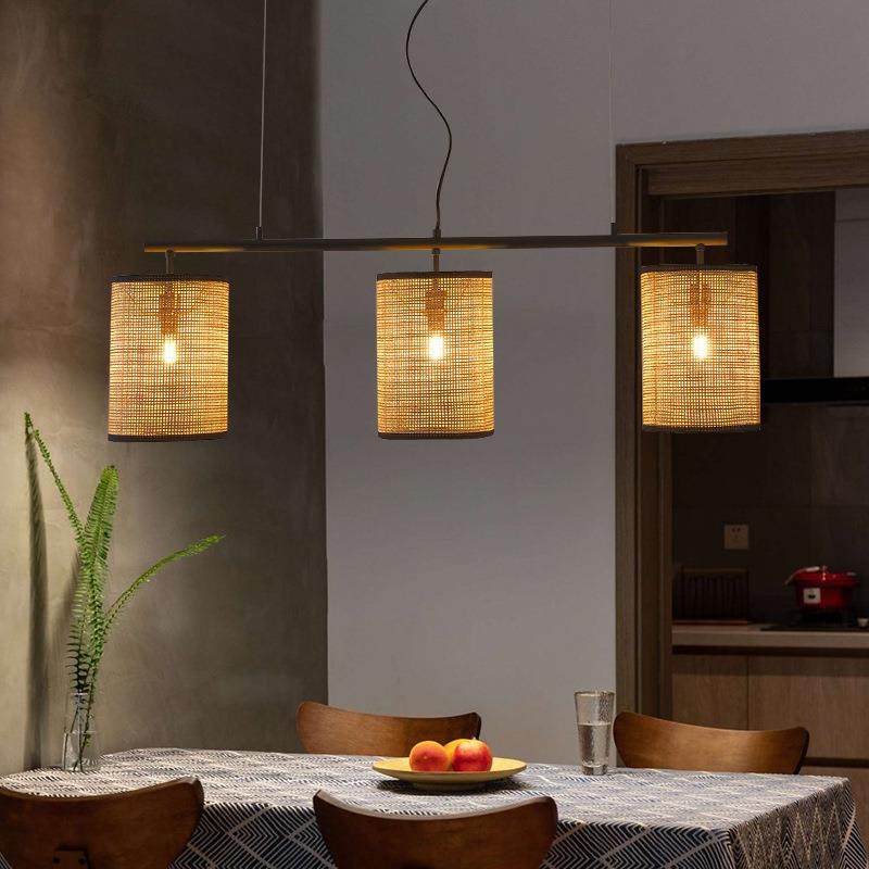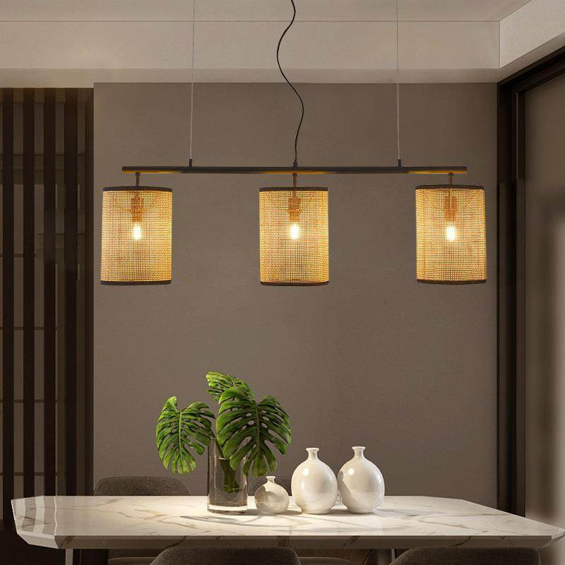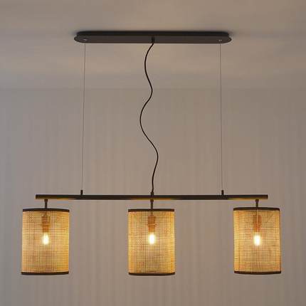 新中式禅意茶室吊灯创意个性餐厅民宿吧台三头装饰竹编藤艺吊灯
