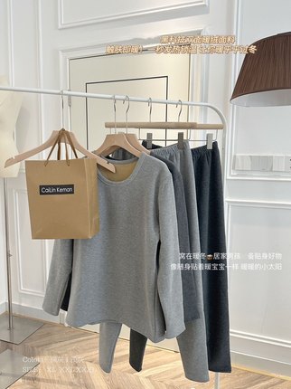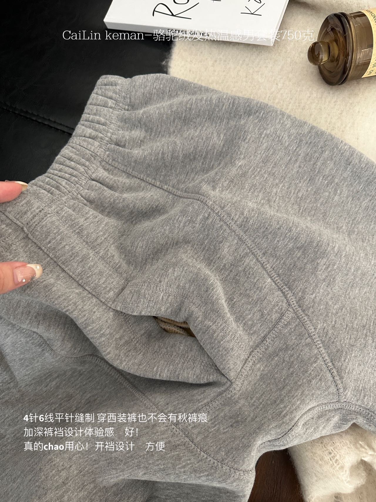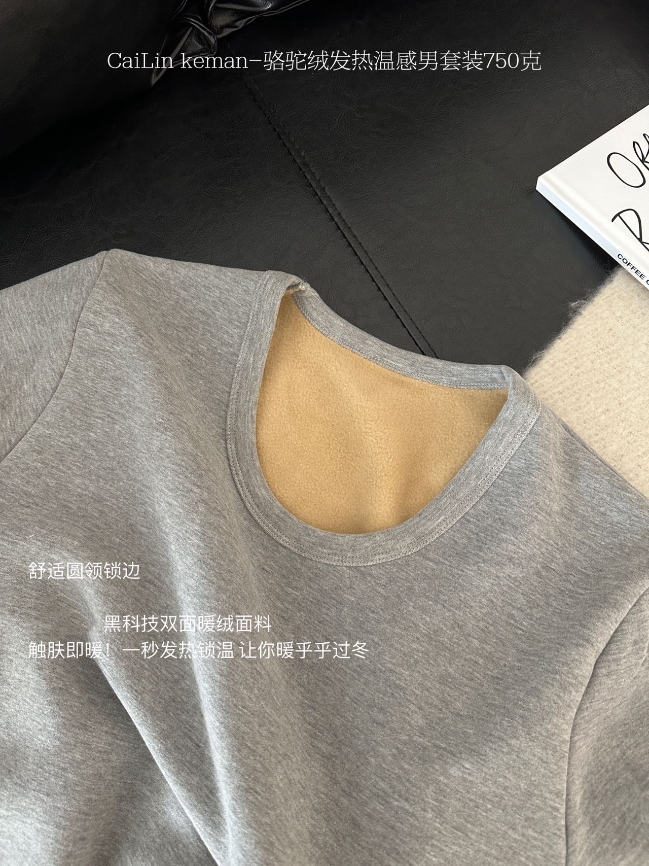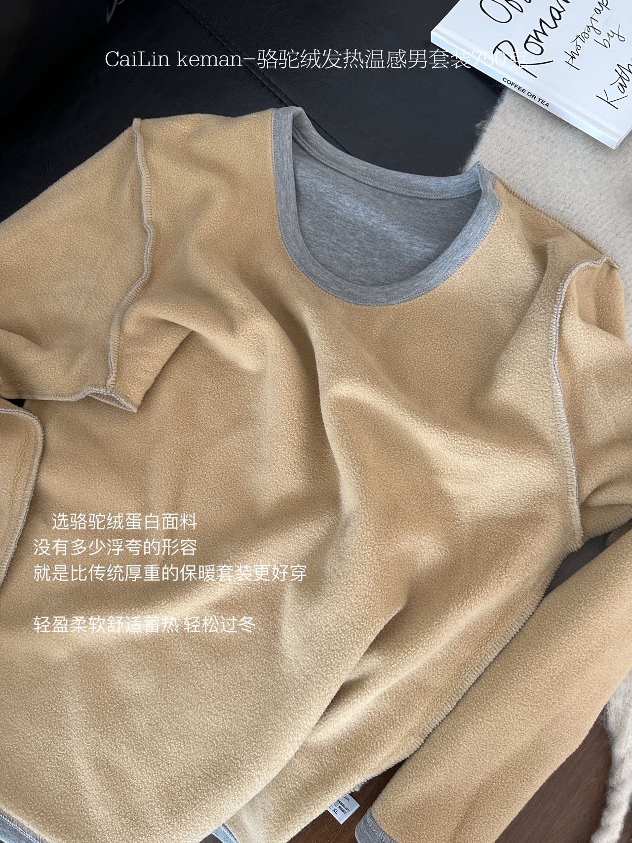 CaiLinkeman骆驼绒发热男士保暖套装圆领冬天加绒加厚防寒冷打底