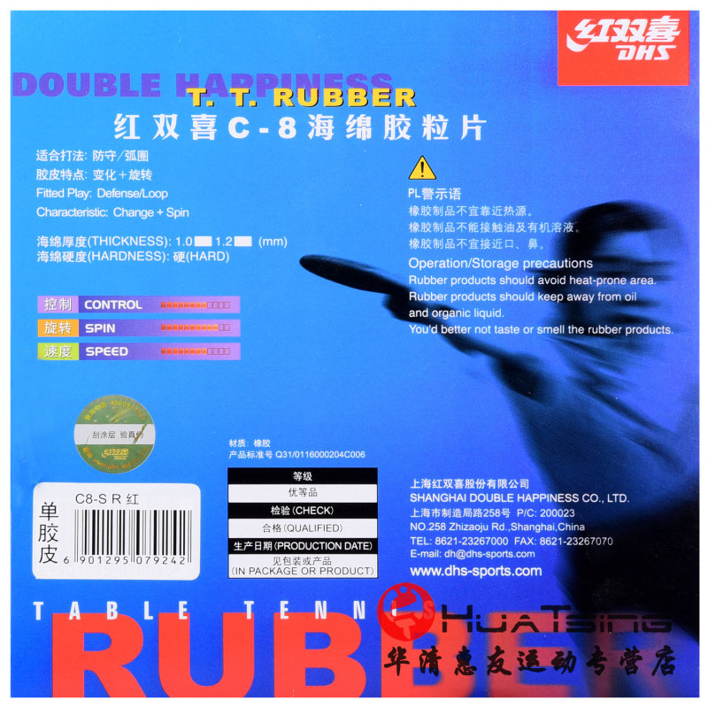 DHS红双喜C7 C8魔术师怪异乒乓球长胶套胶单胶皮球拍颗粒胶云雾3
