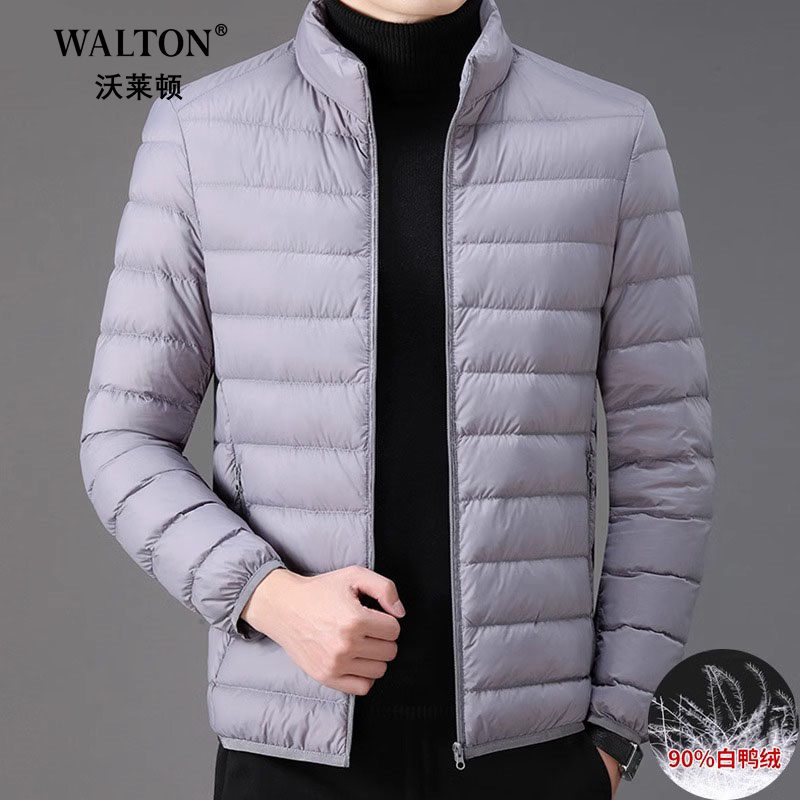 时尚轻薄羽绒服男士2024年冬季新款纯色超轻便立领短款保暖外套男