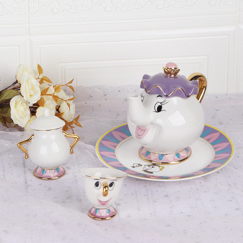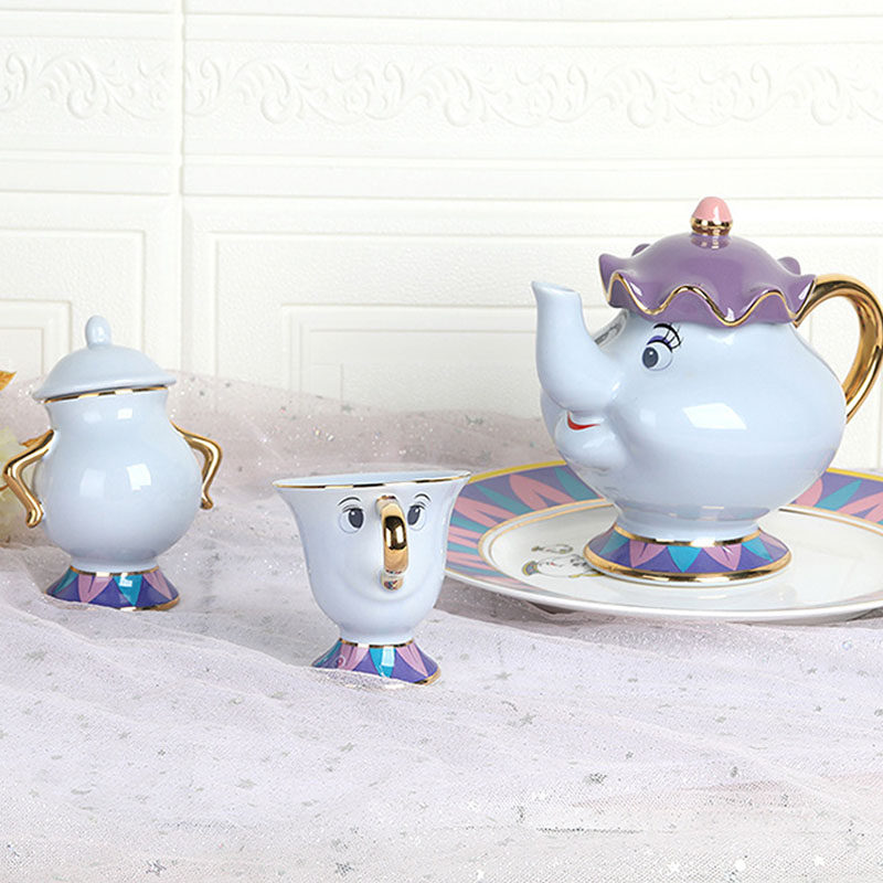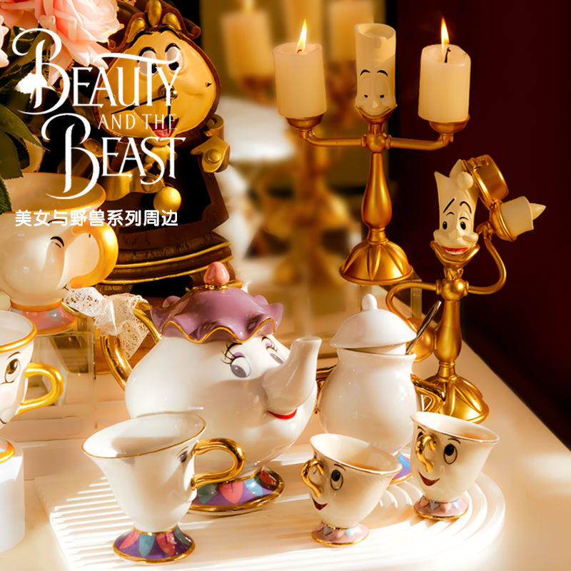迪斯尼美女与野兽陶瓷镀金茶壶茶杯 Mrs. Potts 茶煲太太卡通套装