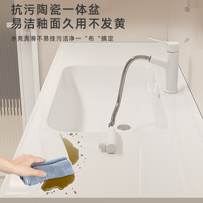 奶油风浴室柜组合轻奢智能实木现代简约卫生间洗漱台洗手洗脸盆柜