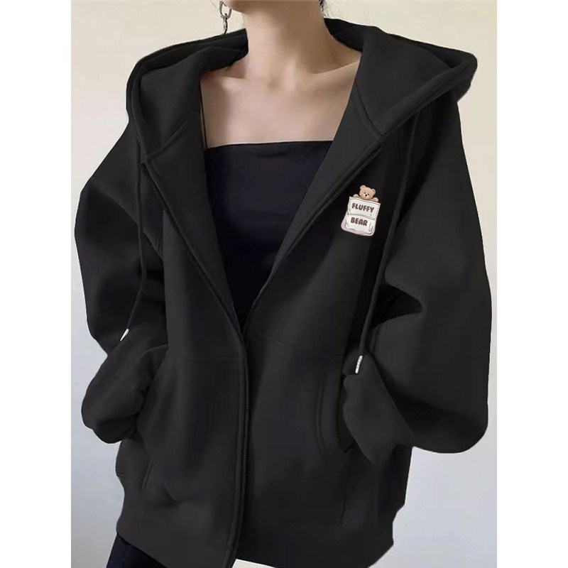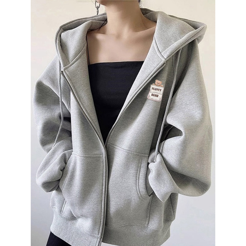 高端大牌即墨纯棉连帽卫衣女秋冬开衫拉链棒球服加绒加厚印花外套