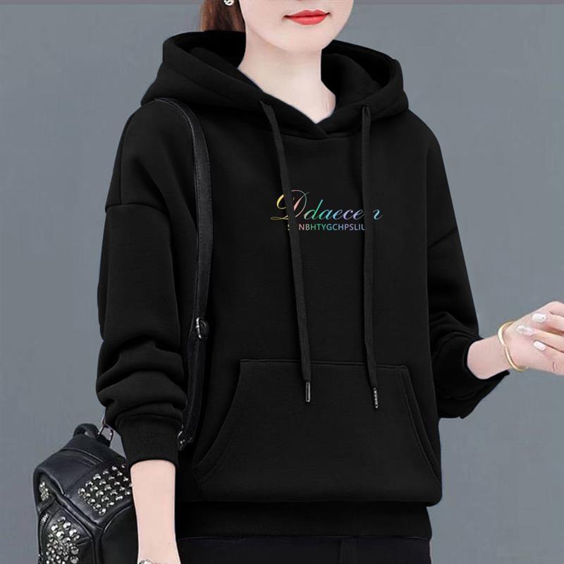 加绒加厚卫衣女秋冬季保暖衫连帽减龄印花妈妈装宽松显瘦外穿上衣