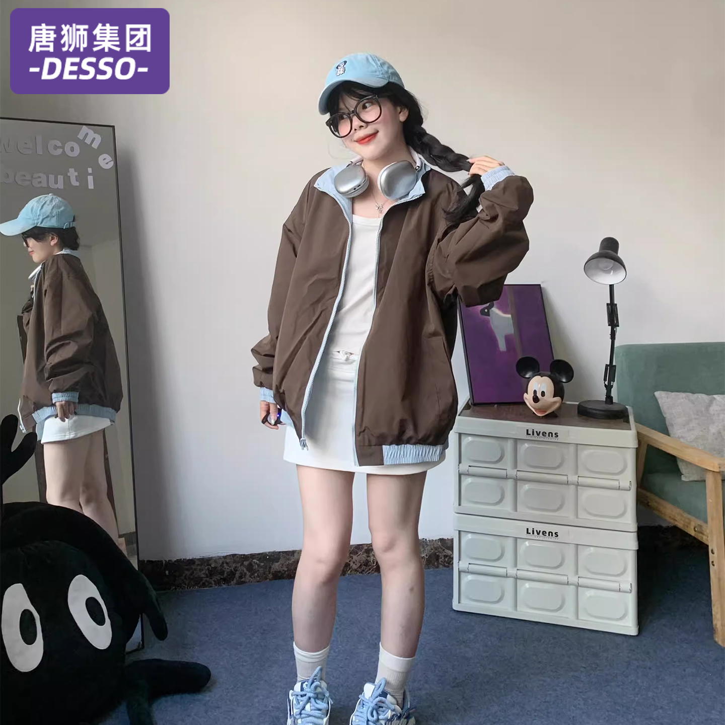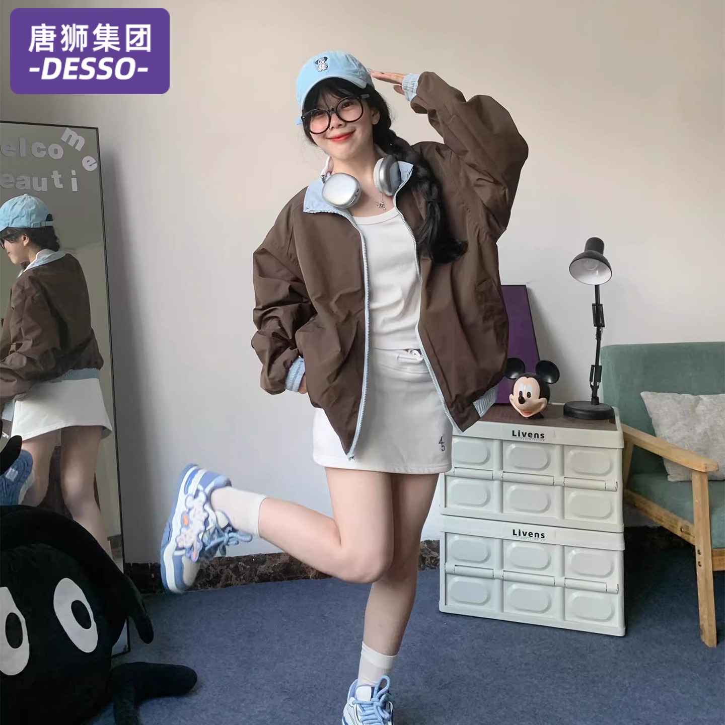 唐狮集团DESSO双面穿外套女春秋季2025新款夹克宽松学生薄棒球服