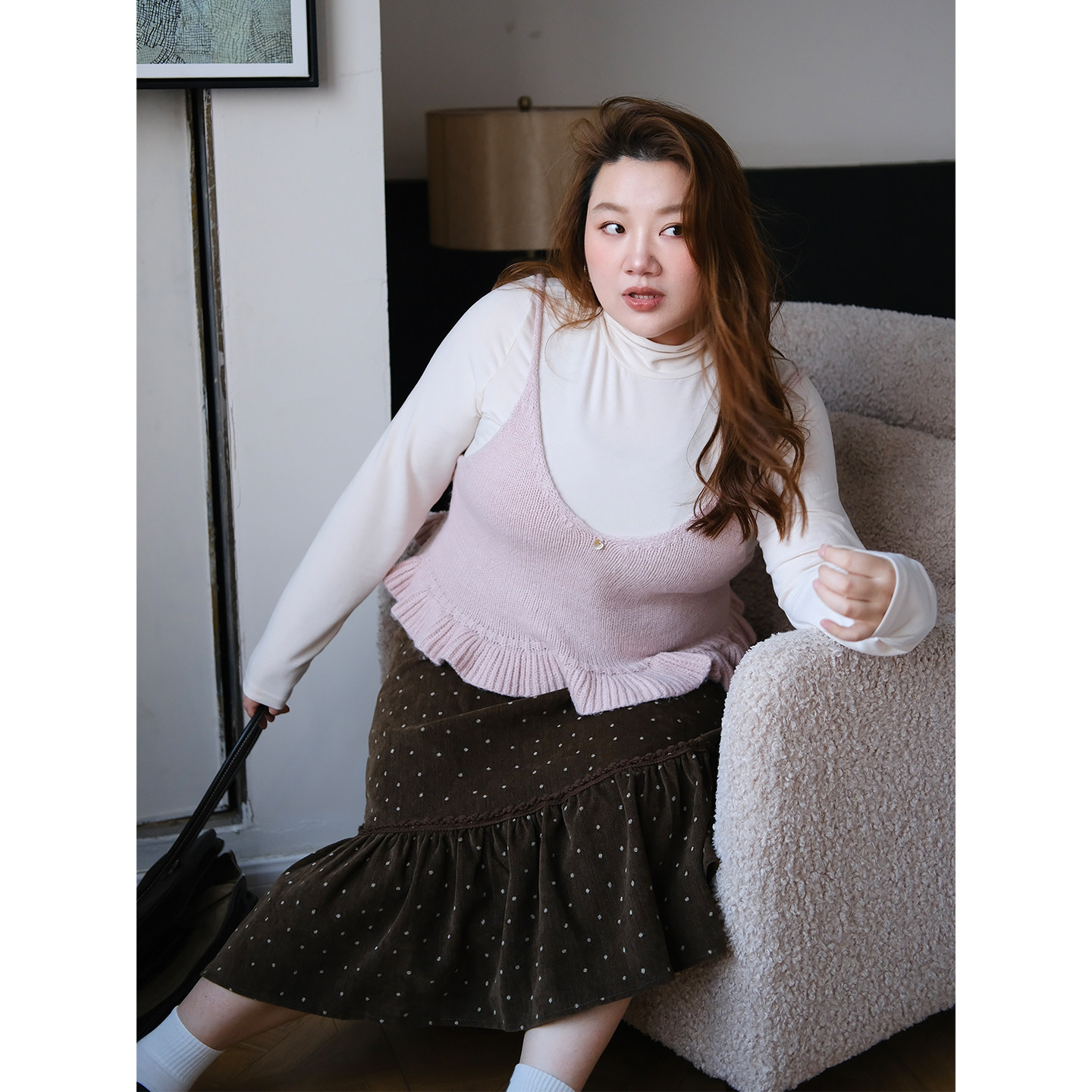 zooobaby01/04韩系简约纯色v领木耳边百搭针织背心