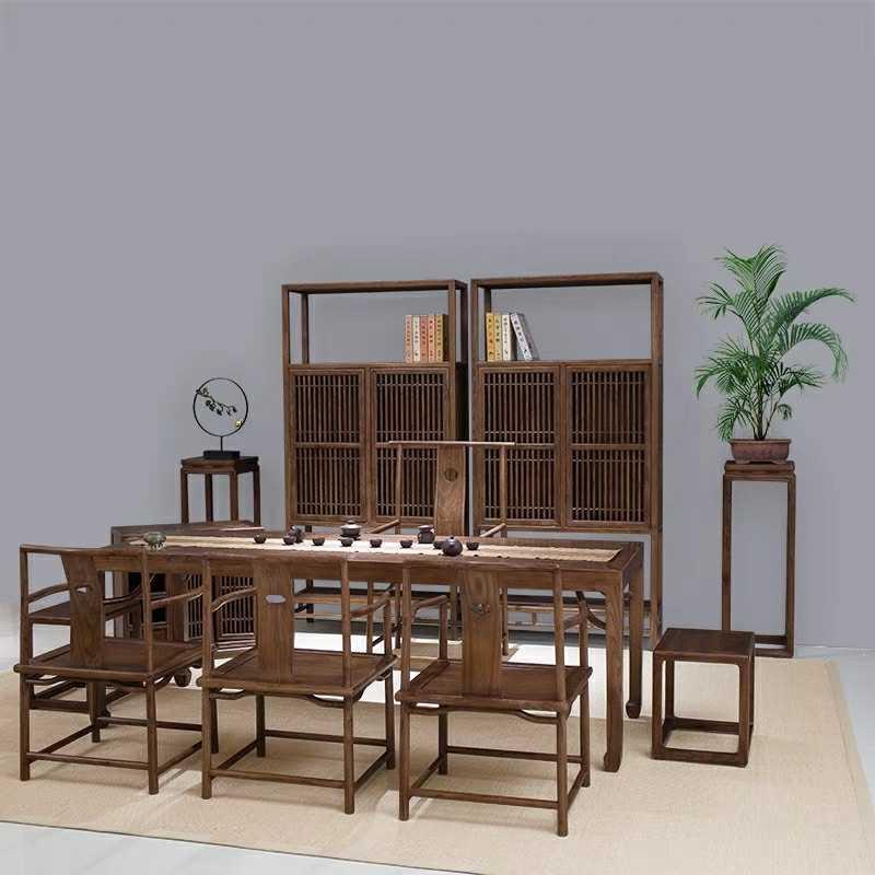 新中式老榆木茶桌椅组合实木餐桌椅禅意会议办公茶桌茶楼茶室茶台