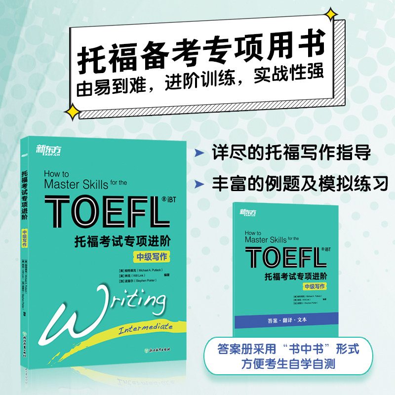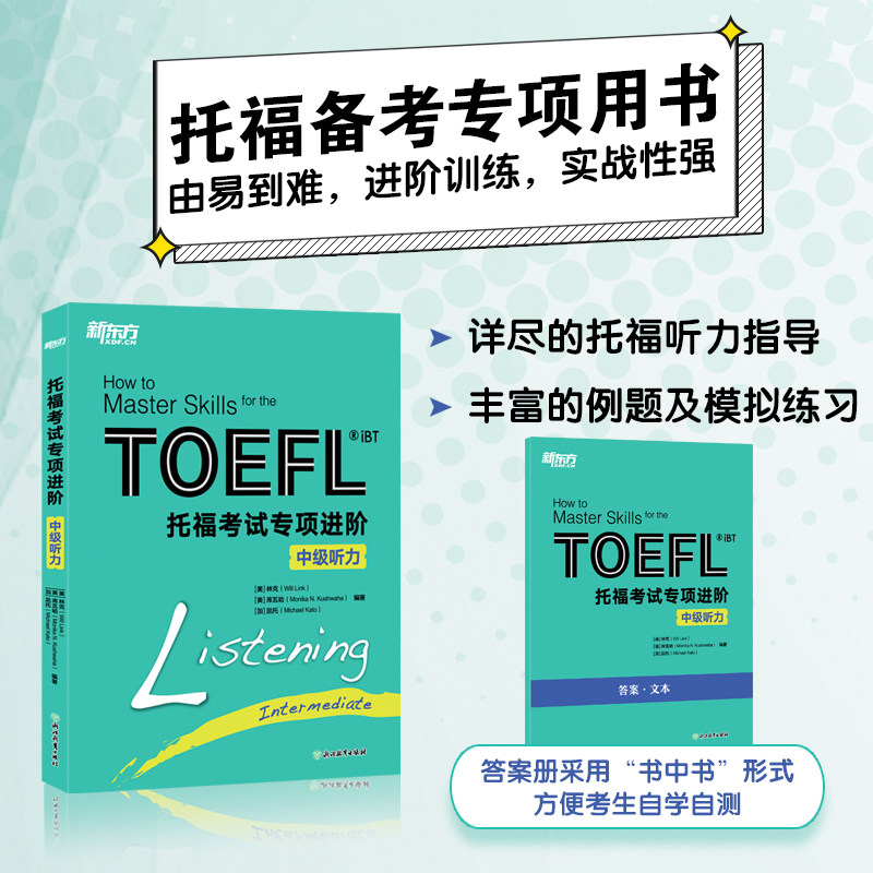 【新东方官方旗舰店】新托福考试专项进阶:中级听力 TOEFL TPO真题词汇模拟试题 长难句高分攻略小伴侣白皮书籍 英语官网