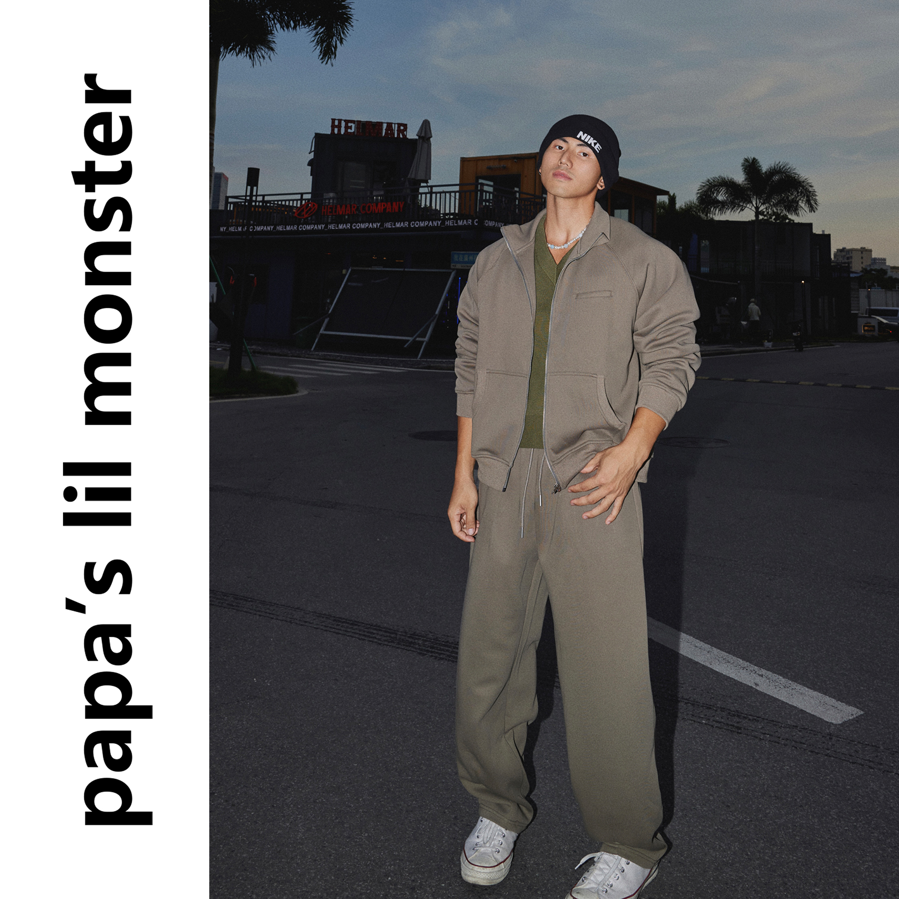 Papaslilmonster 情侣搭配购 美式纯色拉链卫衣休闲长裤套装男