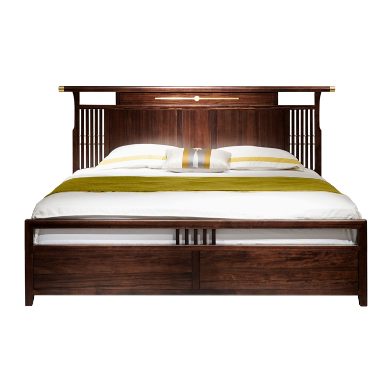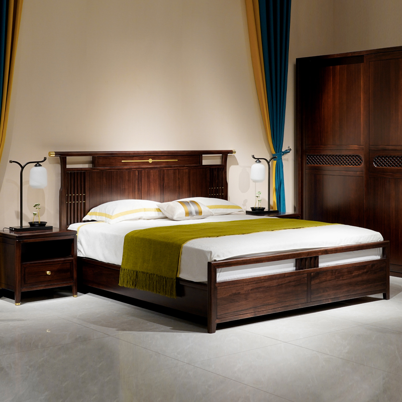 半墨现代新中式乌金木实木床官帽床卧室家用1.5 1.8米双人床婚床