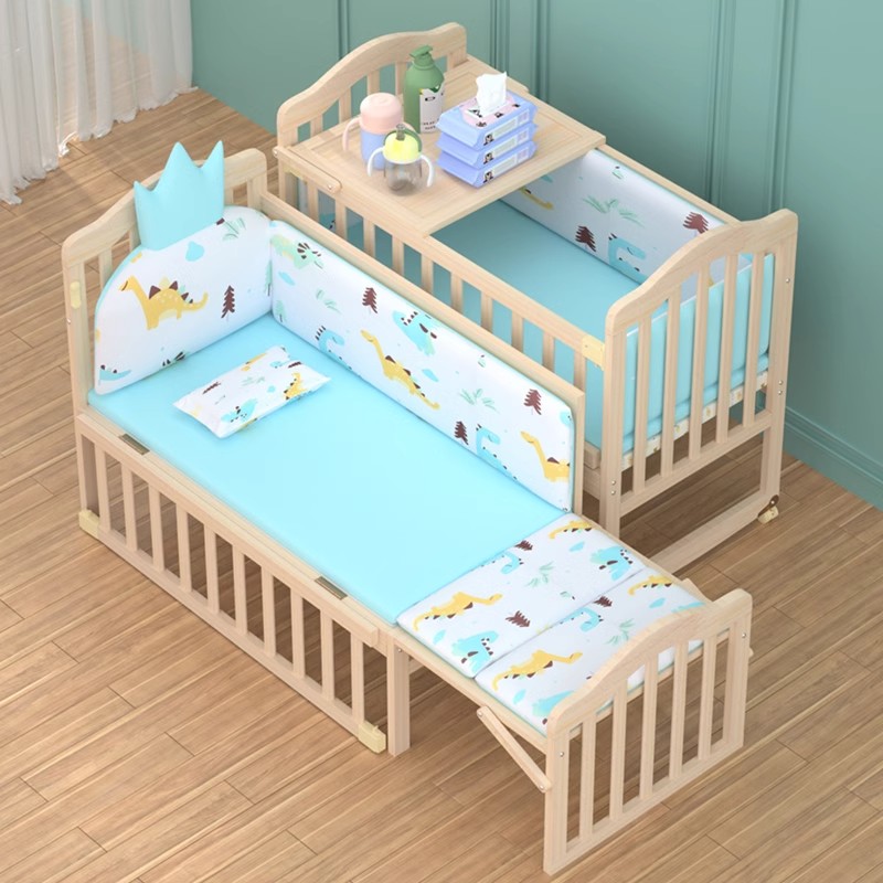 萌宝乐实木婴儿床多功能无漆环保bb宝宝床新生摇篮床儿童拼接大床