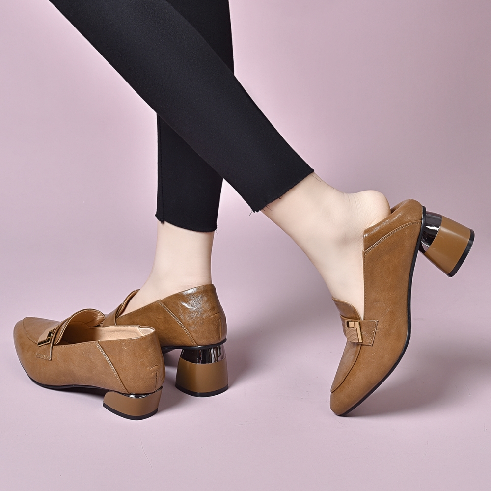 xizi/昔子7556新春款女单鞋真皮粗跟英伦风尖头低跟中跟乐福鞋