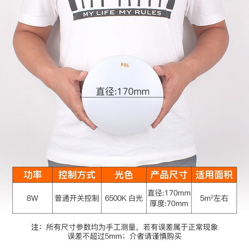 FSL 佛山照明卧室灯led吸顶灯具阳台灯过道走廊灯厨卫灯简约全白
