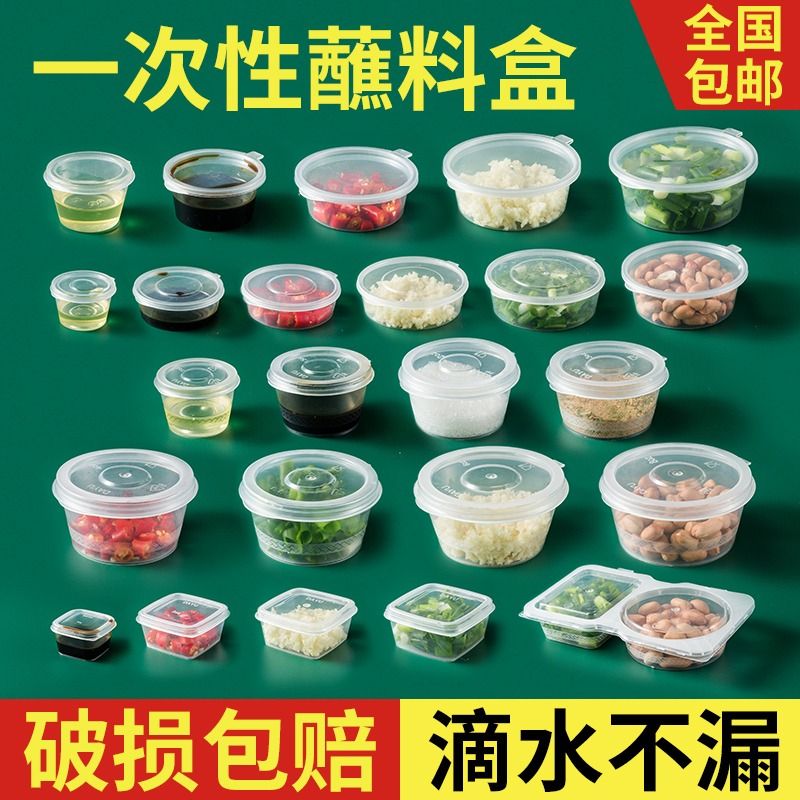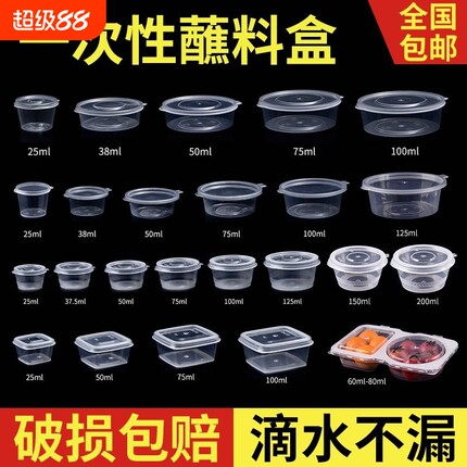 一次性酱料盒带盖调料杯外卖小蘸料盒打包分醋圆形汤碗长方形方便