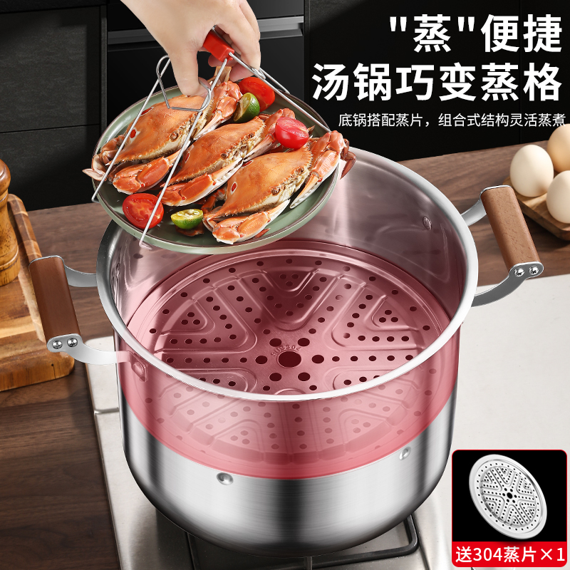 防烫316L不锈钢特高汤锅大容量加厚蒸屉加深家用大号卤肉炖蒸煮锅