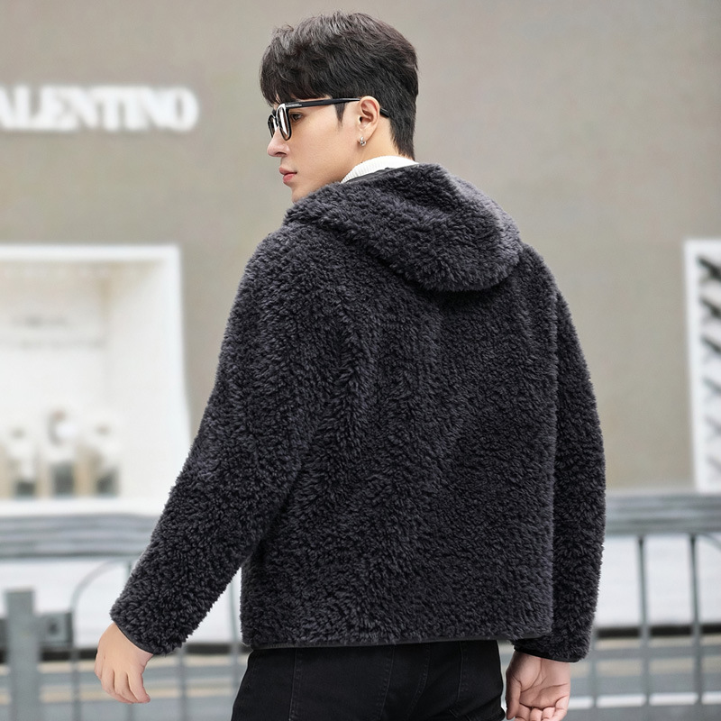 冬季新款皮毛一体男士羊羔毛皮草夹克连帽短款保暖加厚羊剪绒外套